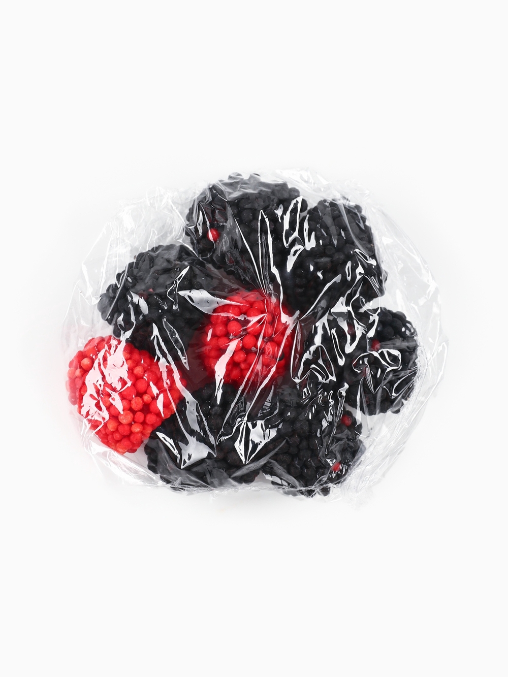 Сахар, патока крахмальная, желирующий агент - желатин, сок яблочный, регулятор кислотности - лимонная кислота, влагоудерживающий агент - сорбитовый сироп, ароматизаторы: малина, чёрная смородина; консервант - сорбиновая кислота, красители: понсо 4R, кармуазин, индигокармин.