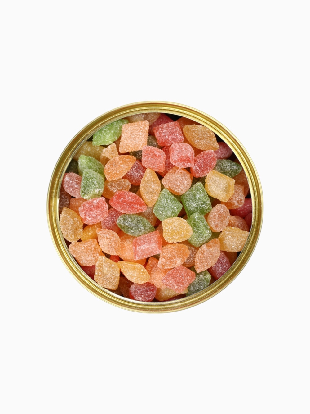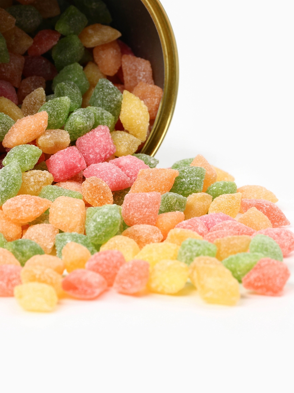 Сахар, патока крахмальная, регулятор кислотности - лимонная кислота, ароматизаторы: "Клубника", "Яблоко", "Алельсин", "Лимон", красители: E102, E110, E124, E133.