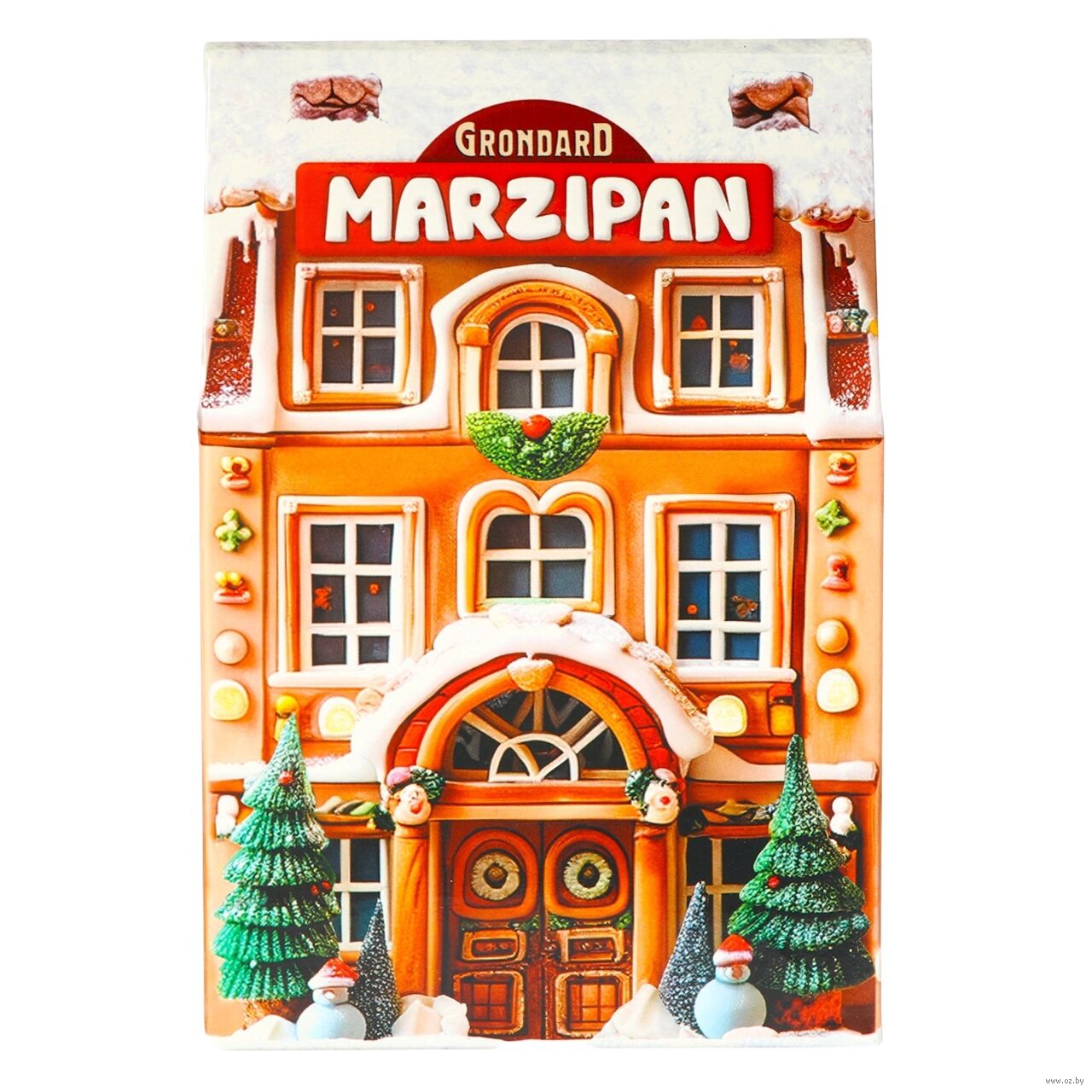Марципан (сахар, миндаль (33%), яблоки сушеные резаные в рисовой обсыпке (яблоко сушеное, мука рисовая), сироп глюкозно-фруктозный, агент влагоудерживающий (сорбит), корица молотая, консервант (сорбат калия), ферментный препарат микробного происхождения (инвертаза), регулятор кислотности: лимонная кислота, ароматизаторы), шоколад темный (сахар, какао тертое, какао-масло, эмульгаторы (соевый лецитин, E476, E492), ароматизатор «Ванилин»), м.д. общего остатка какао не менее 40 %. Не рекомендуется при индивидуальной непереносимости соевого лецитина. Может содержать следы арахиса и молочного белка.