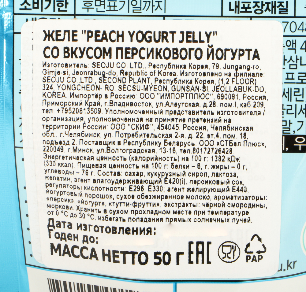 Желе "Peach Yogurt Jelly" со вкусом персикового йогурта.