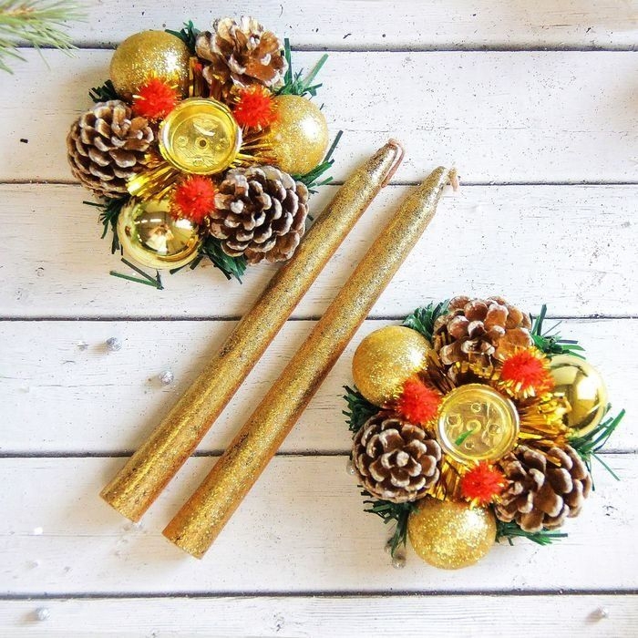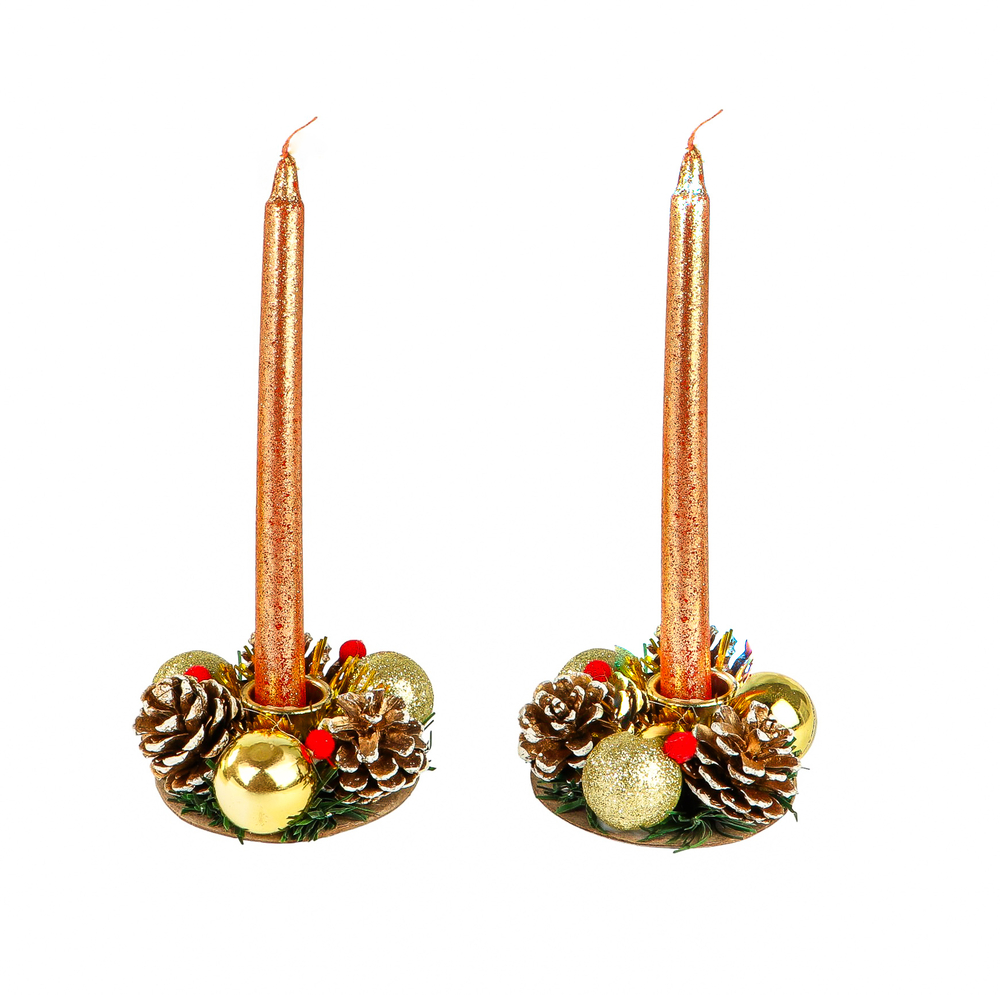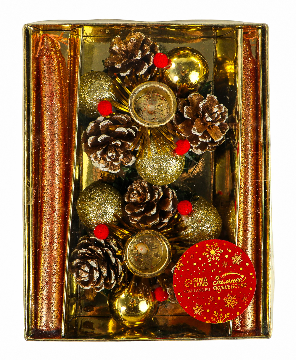 Набор новогодних свечей с подсвечниками станет отличным дополнением к созданию праздничной атмосферы.