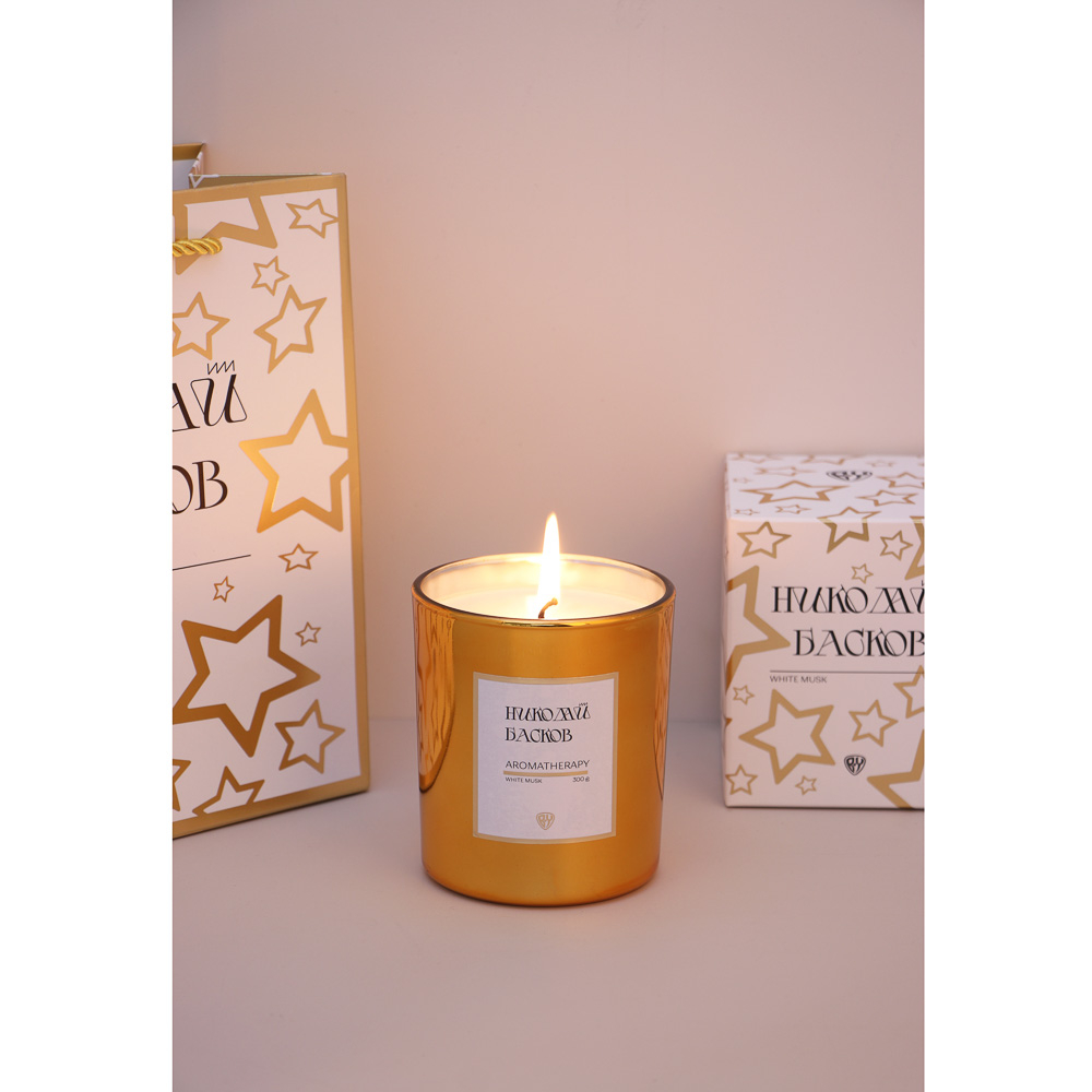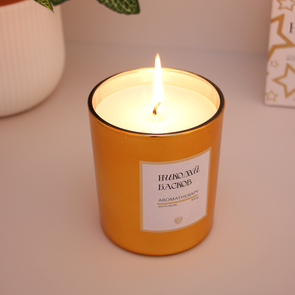 Ароматическая парафиновая свеча BY Николай Басков "White musk" объемом 300 грамм в стеклянном подсвечнике золотого цвета – это особая ароматическая композиция с уникальным ароматом белого мускуса. Душистый глубокий притягательный благоухающий аромат поможет испытать истинное наслаждение и позволит по-настоящему расслабиться.