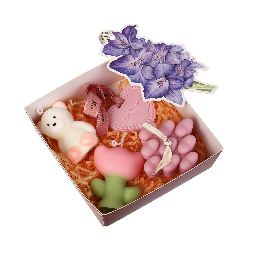 Набор свечей в подарочной упаковке – это формовые свечи, которые имеют очаровательный дизайн в нежной цветовой гамме.