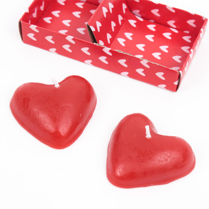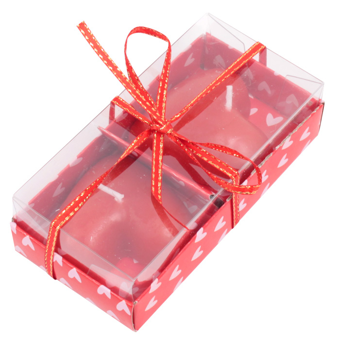 "Сердце" свечи в наборе 2 шт. Размер свечи 5х5 см. Упаковка – коробка картонная с прозрачной крышкой 11х5,5х3 см.