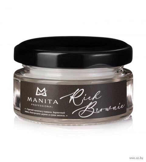 Создайте тёплую и уютную атмосферу с ароматической свечой "Rich Brownie" от Manita Professional. Аромат сочетает бисквит, ваниль, шоколад, кофе, какао и топлёное молоко, создавая насыщенный, тёплый и сладкий букет, который напоминает о свежей выпечке и уютных вечерах.