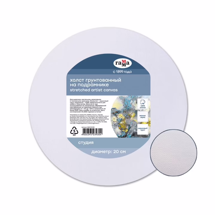 Хлопковый холст на подрамнике ГАММА серии "Студия", круглый и грунтованный, подойдёт для живописи масляными, акриловыми, темперными и гуашевыми красками.