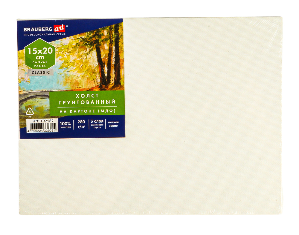 Прочная поверхность холста выдерживает множество слоев краски и воздействие разбавителей, хорошо переносит изменения влажности и температуры. Грунтованное мелкозернистое полотно из 100% хлопка плотностью 280 г/м2 наклеено на основу из МДФ.