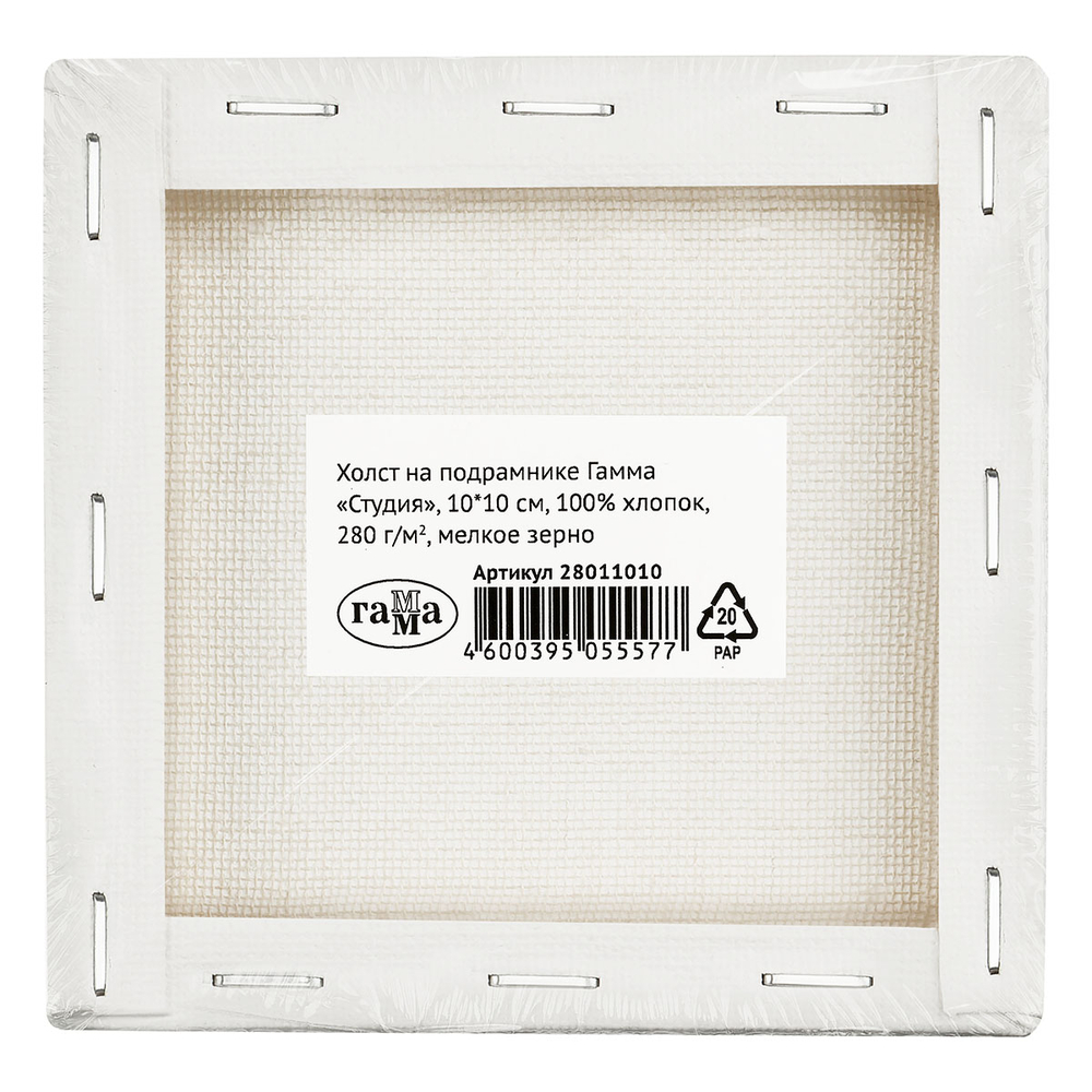 Хлопковый холст серии "Студия" грунтованный на подрамнике подойдет для живописи масляными, акриловыми, темперными и гуашевыми красками. Размер – 10х10 см. Основа – натуральное полотно, 100% хлопок, мелкое зерно.
