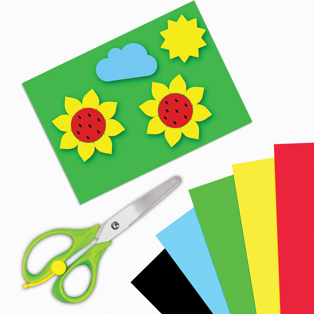 Набор цветного картона предназначен для творчества и хобби и может использоваться детьми с трехлетнего возраста. Картон рекомендован для уроков труда и технологии. Творческая инструкция по созданию аппликации на обороте.