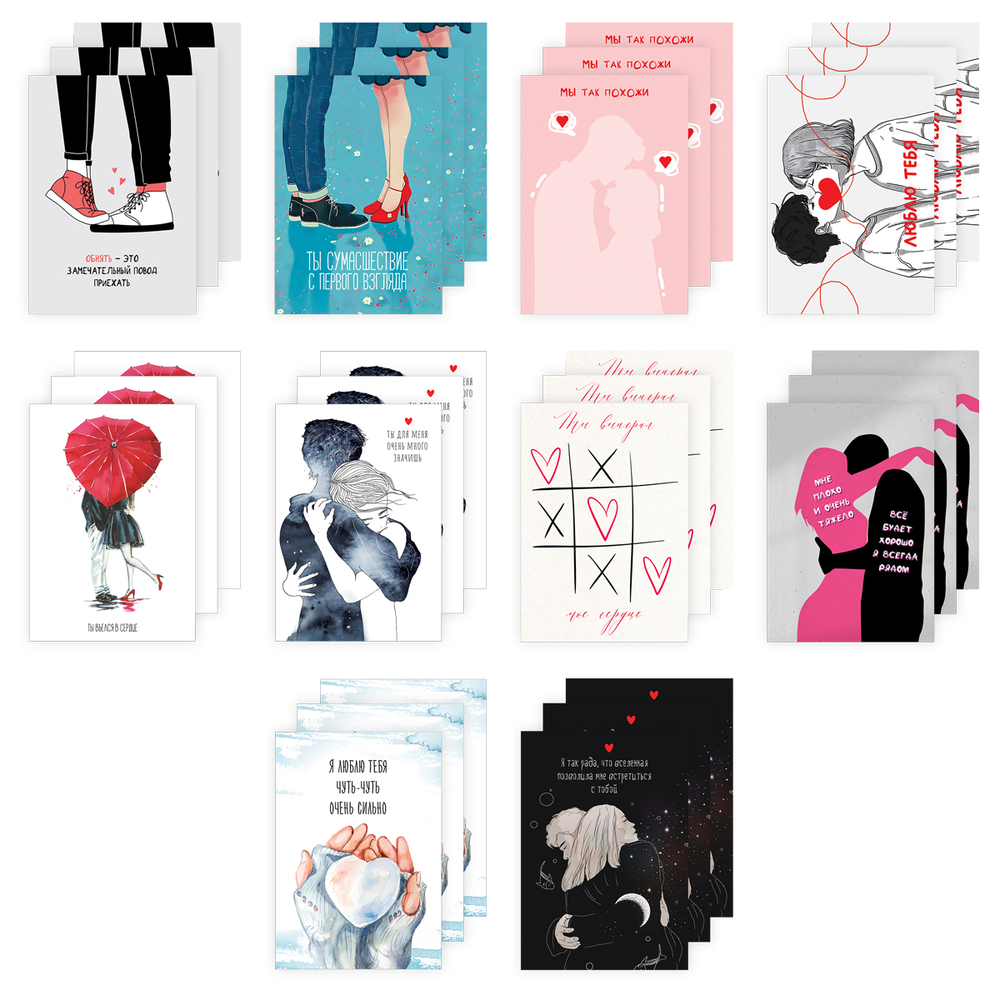 Набор открыток "Love" станет отличным дополнением к подарку для ваших близких, друзей и коллег.