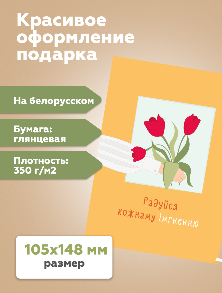 Паштоўка адпавядае паштовым стандартам. Шчыльная глянцавая папера вытрымае ўсе паштовыя прыгоды, а калі вам захочацца "абараніць" паштоўку ад штэмпеляў, перагібаў і выпадковых плям, яна выдатна змесціцца ў канверт.
