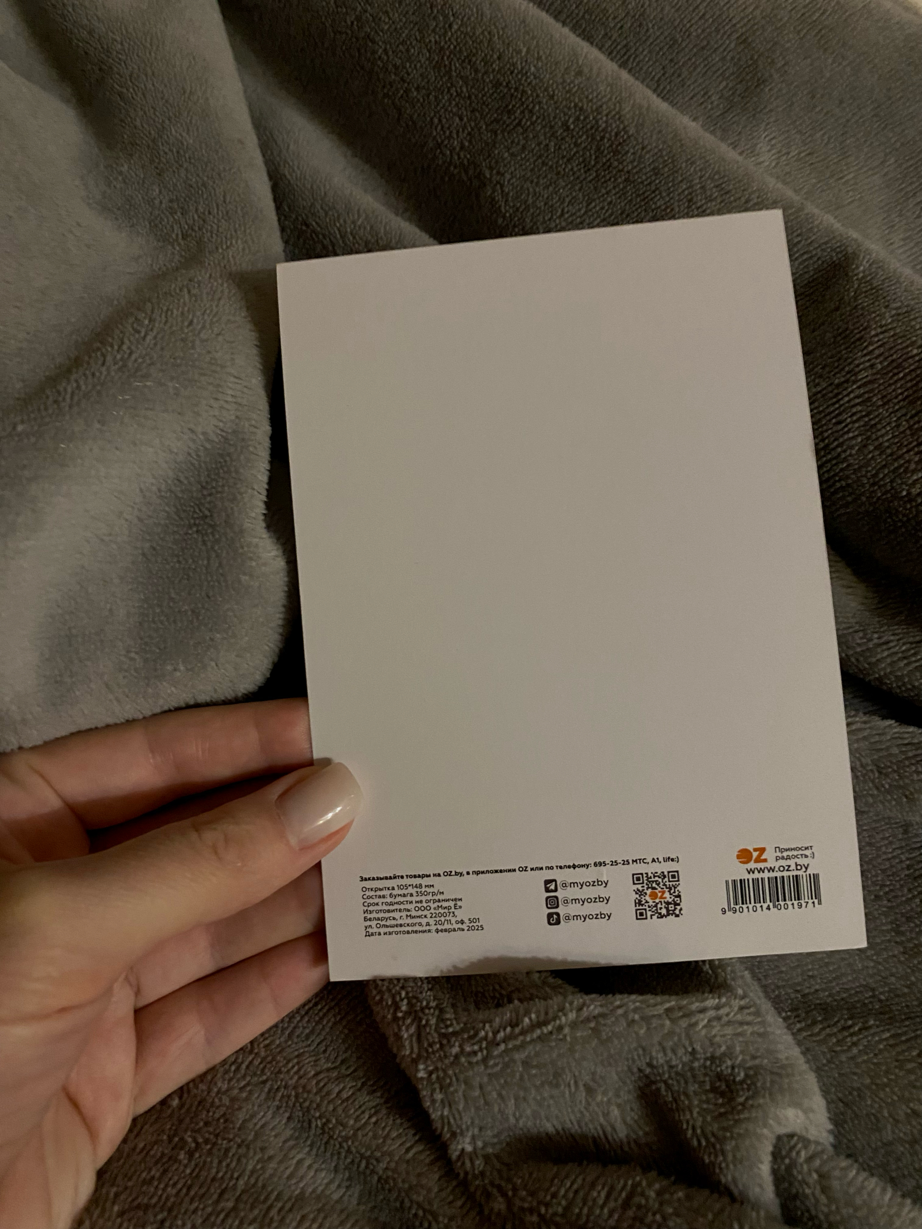 Открытка соответствует почтовым стандартам. Благодаря оригинальному оформлению отлично подходит для посткроссинга – дарите радость вместе с OZ!