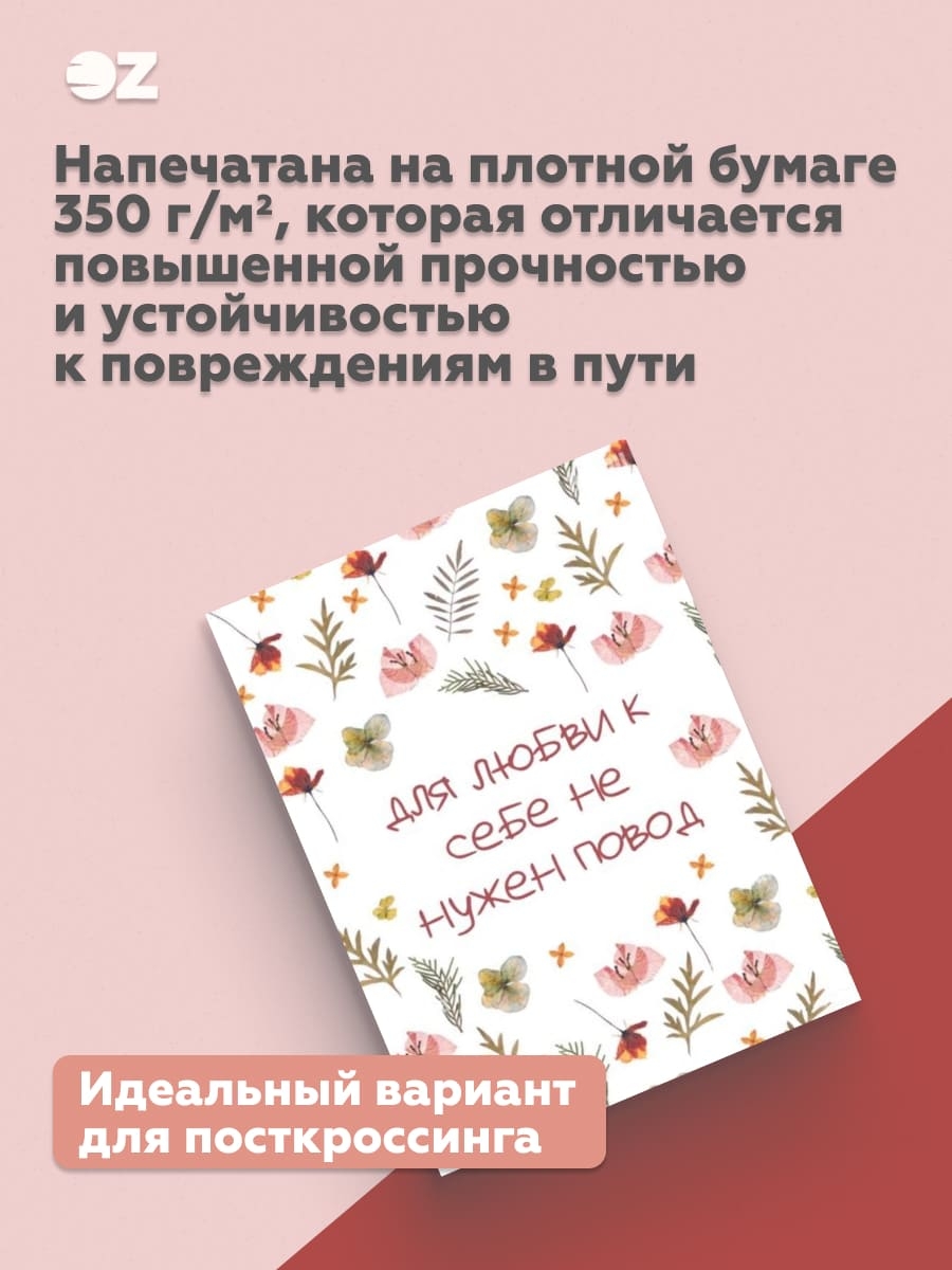 Открытка соответствует почтовым стандартам. Благодаря оригинальному оформлению отлично подходит для посткроссинга – дарите радость вместе с OZ!