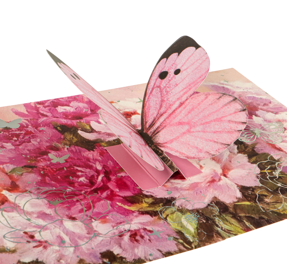 Открытка 3D "Бабочка" – объёмное чудо в ваших руках. При открытии бабочка "парит" над страницей, создавая волшебный эффект.