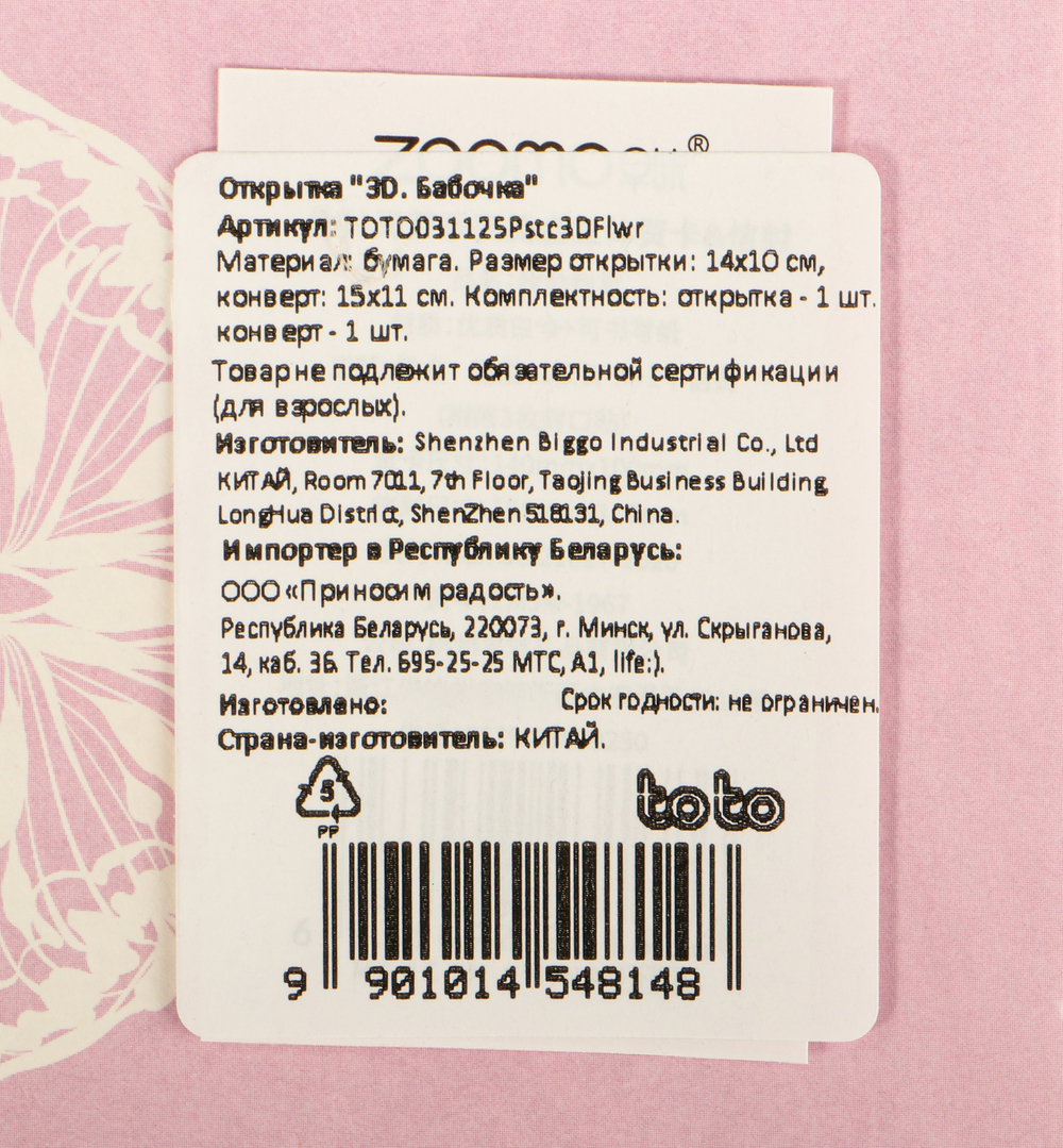 | Импортер | ООО «Приносим радость», 220073, г. Минск, ул. Скрыганова, д. 14, каб. 36. |