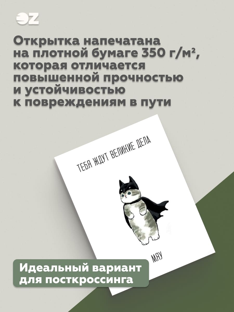 Открытка соответствует почтовым стандартам. Благодаря оригинальному оформлению отлично подходит для посткроссинга – дарите радость вместе с OZ!