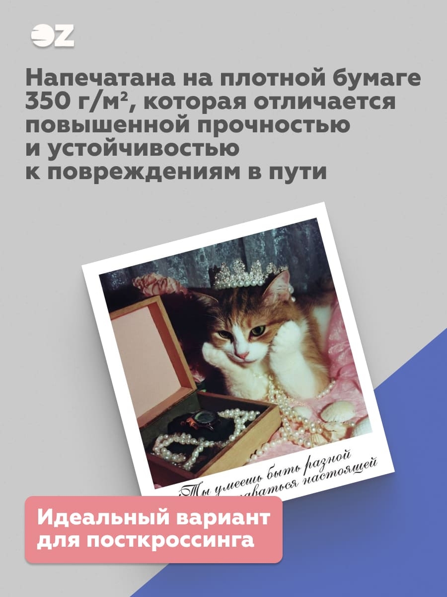Открытка соответствует почтовым стандартам. Благодаря оригинальному оформлению отлично подходит для посткроссинга – дарите радость вместе с OZ!