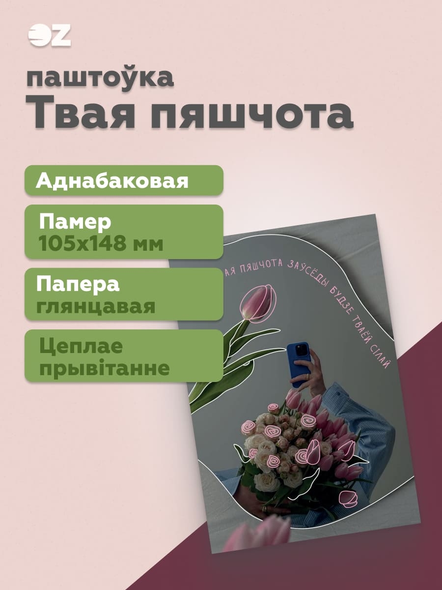 Паштоўка адпавядае паштовым стандартам. Шчыльная глянцавая папера вытрымае ўсе паштовыя прыгоды, а калі вам захочацца "абараніць" паштоўку ад штэмпеляў, перагібаў і выпадковых плям, яна выдатна змесціцца ў канверт.