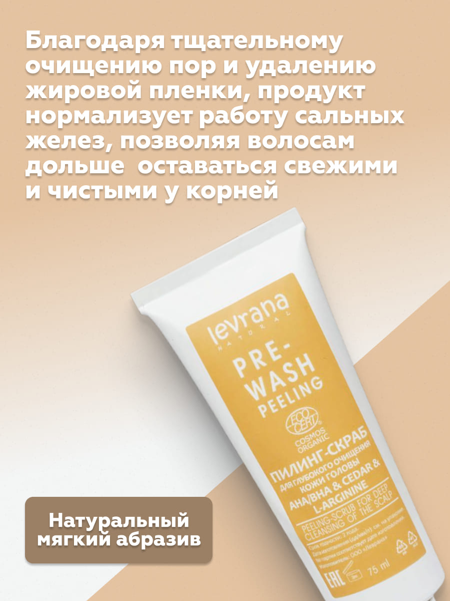 Пилинг с мягким абразивом из органической кедровой скорлупы эффективно очищает кожу головы от ороговевших чешуек, скопления излишков кожного жира, остатков укладочных средств, тем самым решая проблему повышенной жирности волос.
