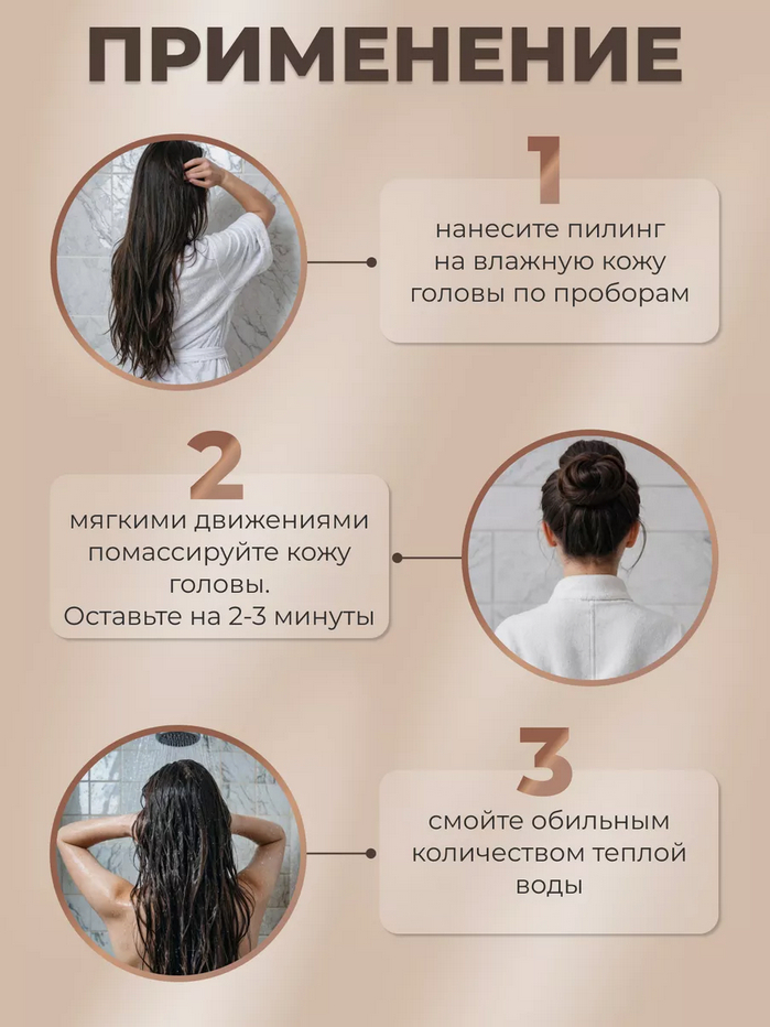Нанесите пилинг на влажную кожу головы по проборам. Мягкими движениями помассируйте кожу головы. Оставьте действовать продукт на 2-3 минуты. Обильно смойте водой. В заключении процедуры вымойте голову шампунем.Состав
