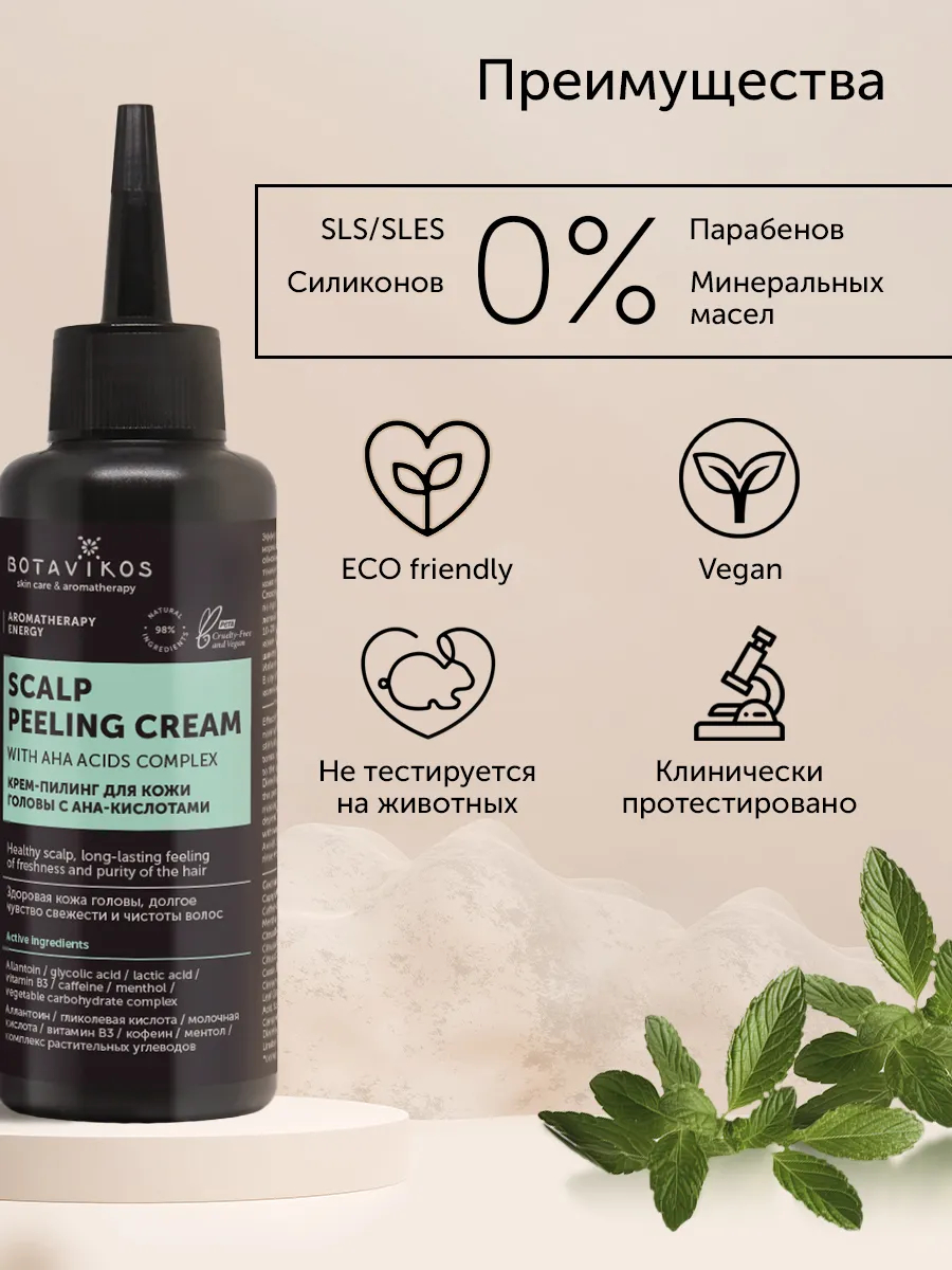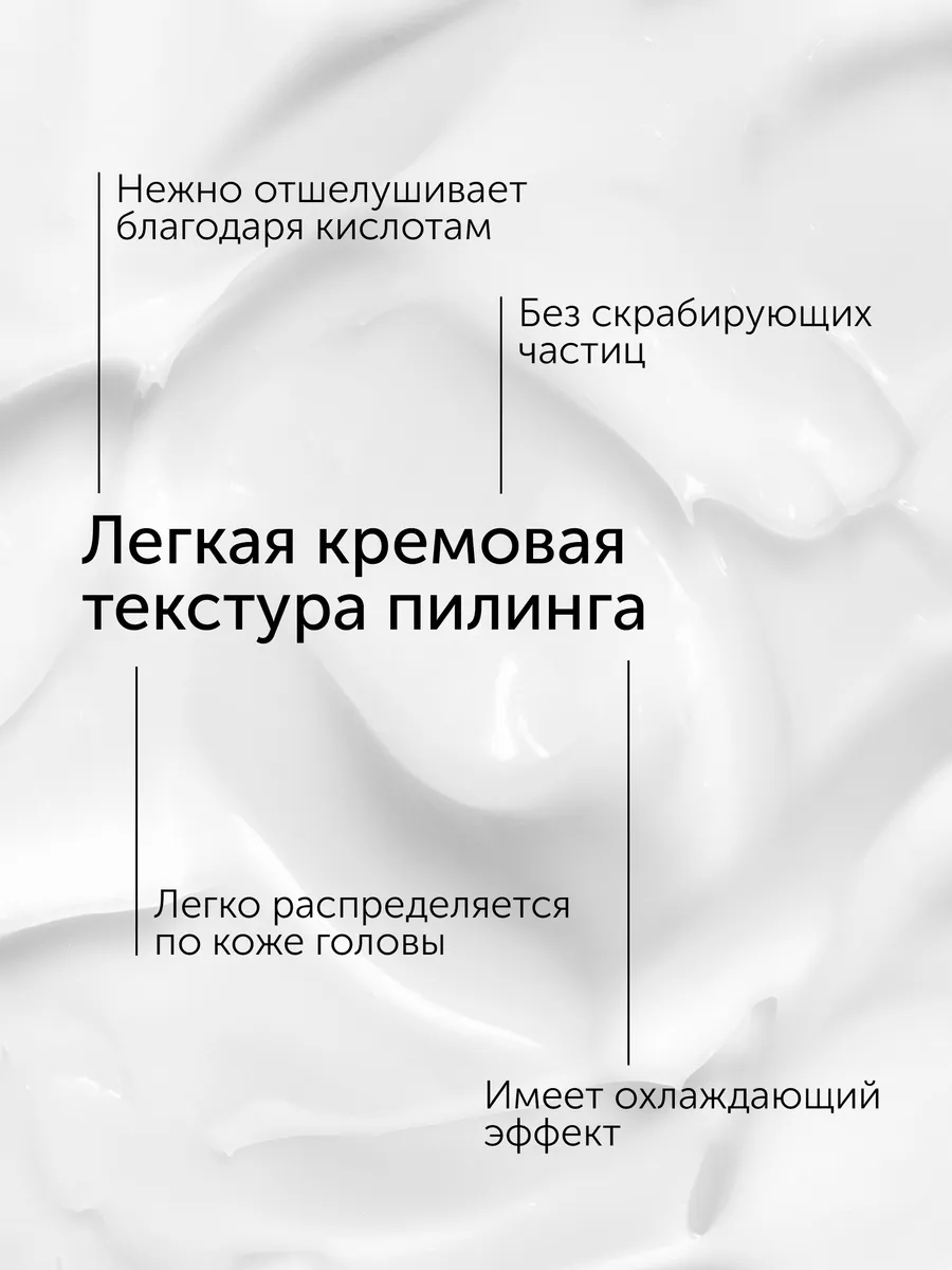Крем-пилинг эффективно очищает и улажняет кожу головы, нормализует работу сальных желез, стимулирует обновление клеток эпидермиса. Приятно охлаждает, тонизирует, дарит чувство чистоты и свежести коже и волосам.