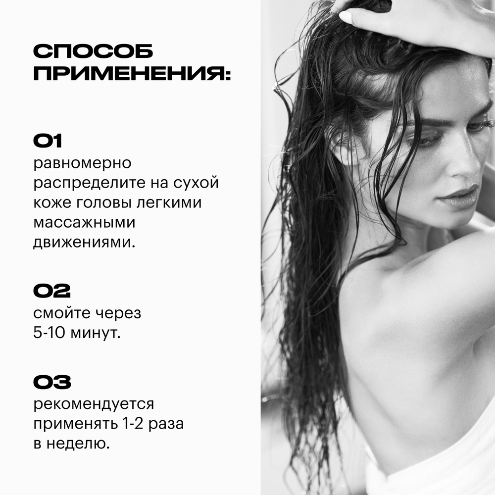 Равномерно распределите на сухой коже головы лёгкими массажными движениями. Смойте через 5-10 минут. Рекомендуется применять 1-2 раза в неделю.Состав