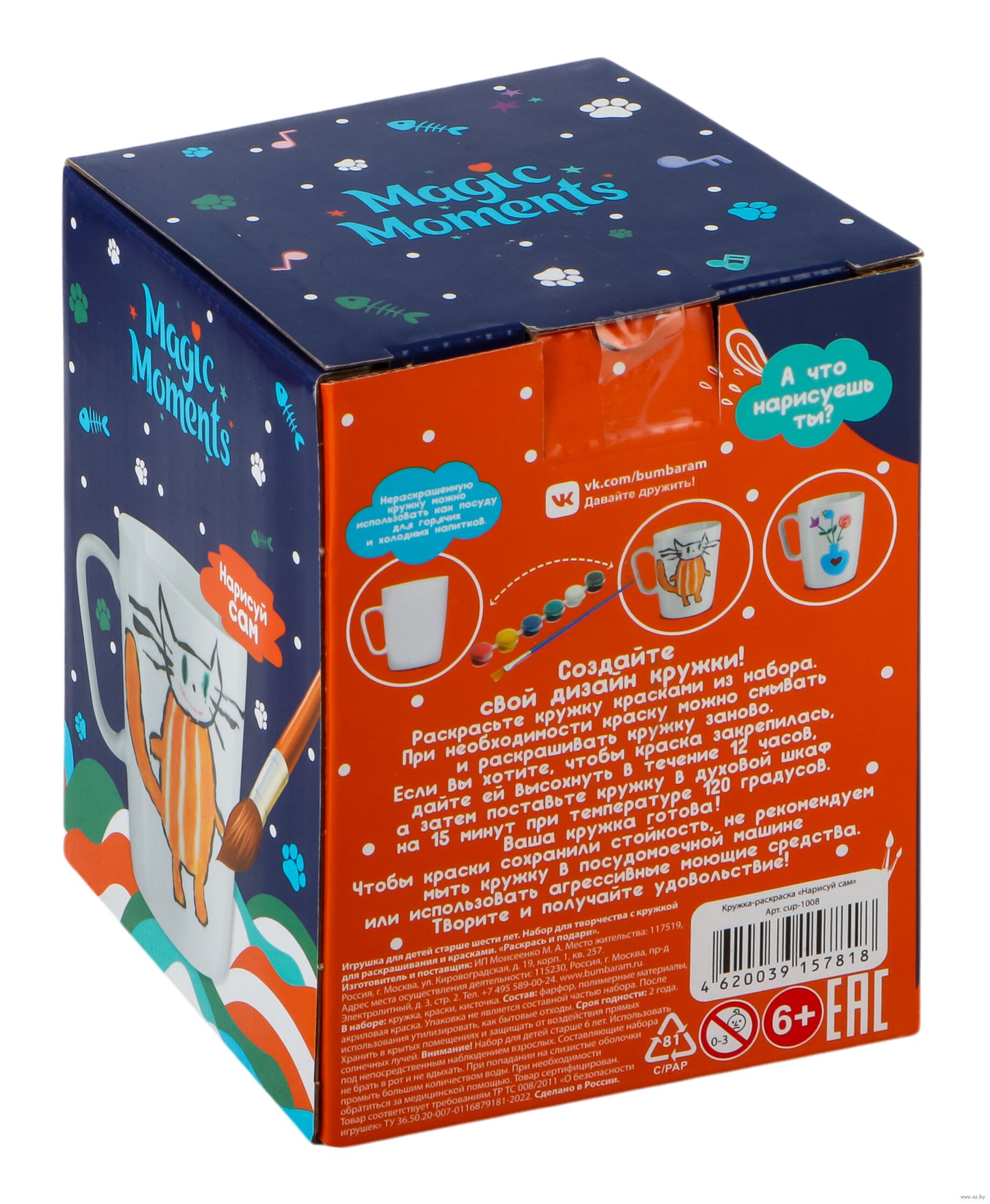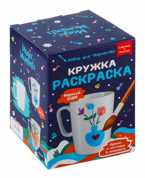 Кружка выполнена из качественного фарфора и очень приятная на ощупь. Краски и кисточка входят в комплект.