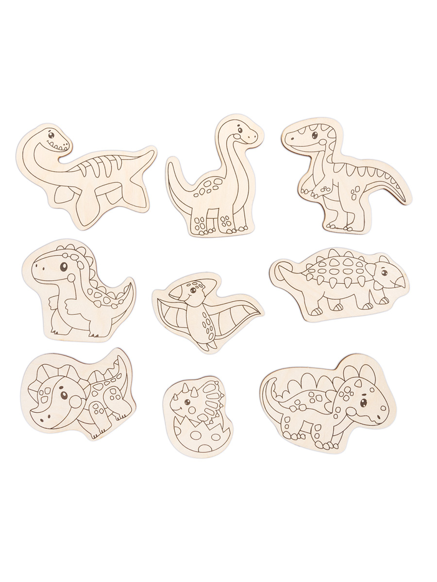 Набор для росписи по дереву "Динозавры" – это 9 фигурок динозавриков из древесного материала, которые нужно раскрасить. Все необходимое для творчества входит в набор!
