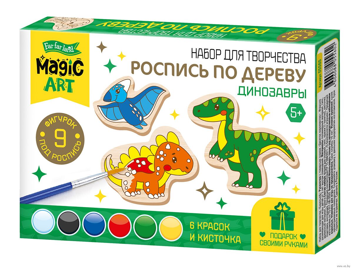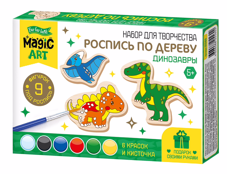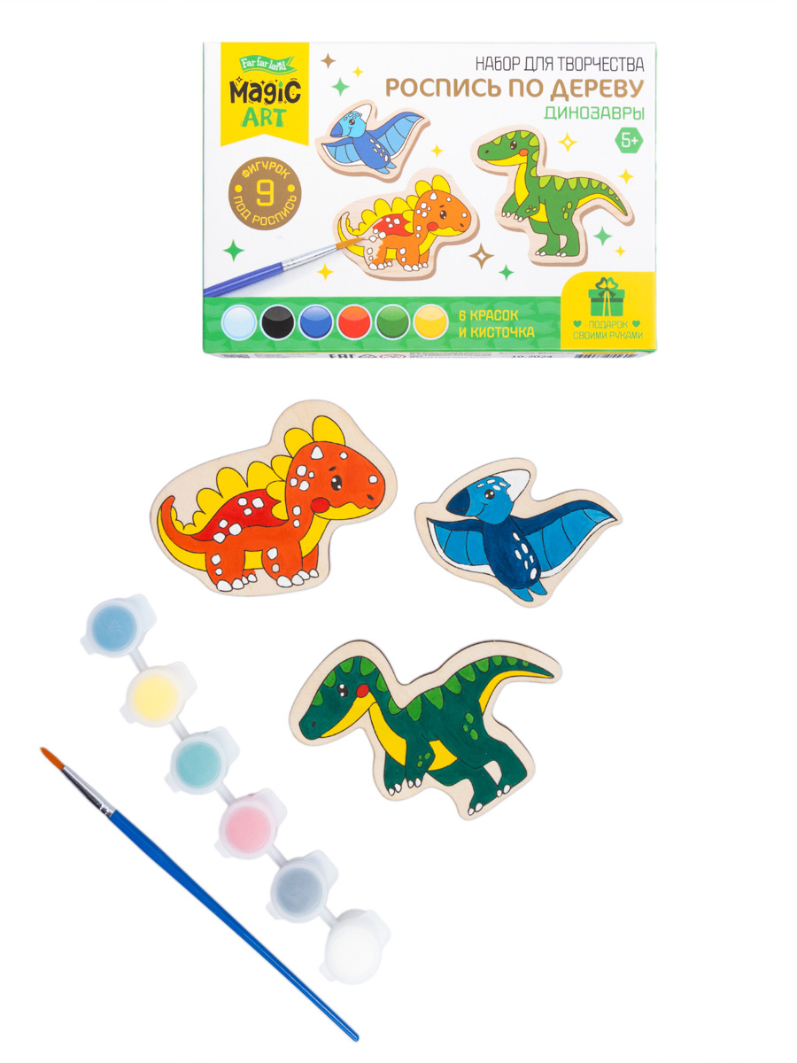 С набором для росписи по дереву "Динозавры" вы создадите оригинальные сувениры для друзей и близких. Занятия росписью развивают мелкую моторику, художественный и эстетический вкус, тренируют внимательность и усидчивость.