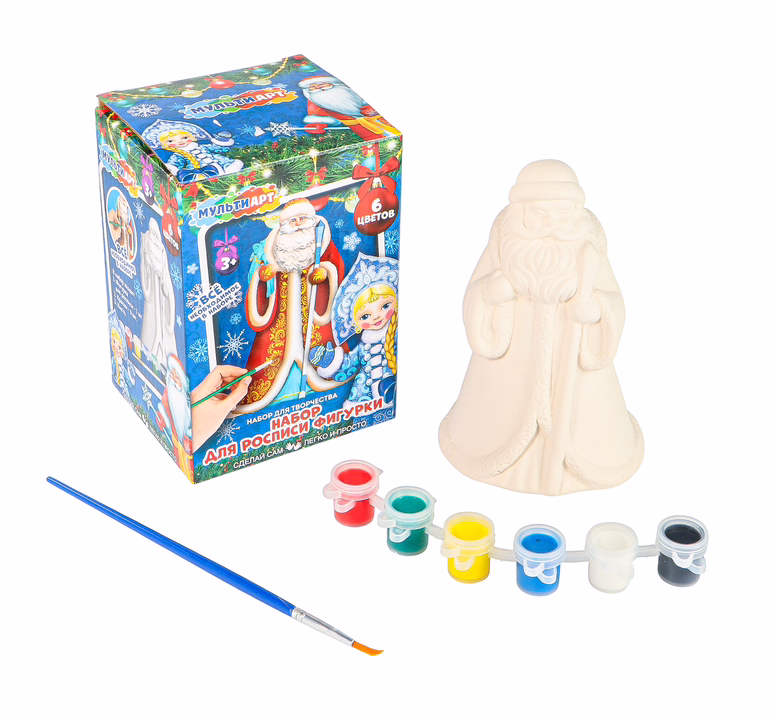 С этим набором ребёнок самостоятельно или с помощью родителей сможет расписать фигурку самого знаменитого новогоднего персонажа. Готовое изделие отлично подойдёт для подарка близким и родным или для украшения интерьера.