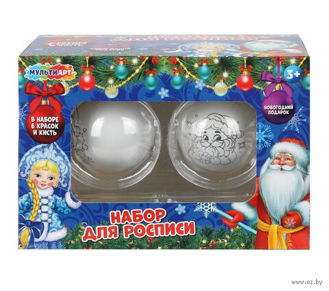 С этим набором ребёнок самостоятельно или с помощью родителей сможет расписать ёлочный шар для украшения с изображением Деда Мороза и милого щенка. Готовое изделие отлично подойдёт для украшения ёлки/дома или для подарка близким и родным.