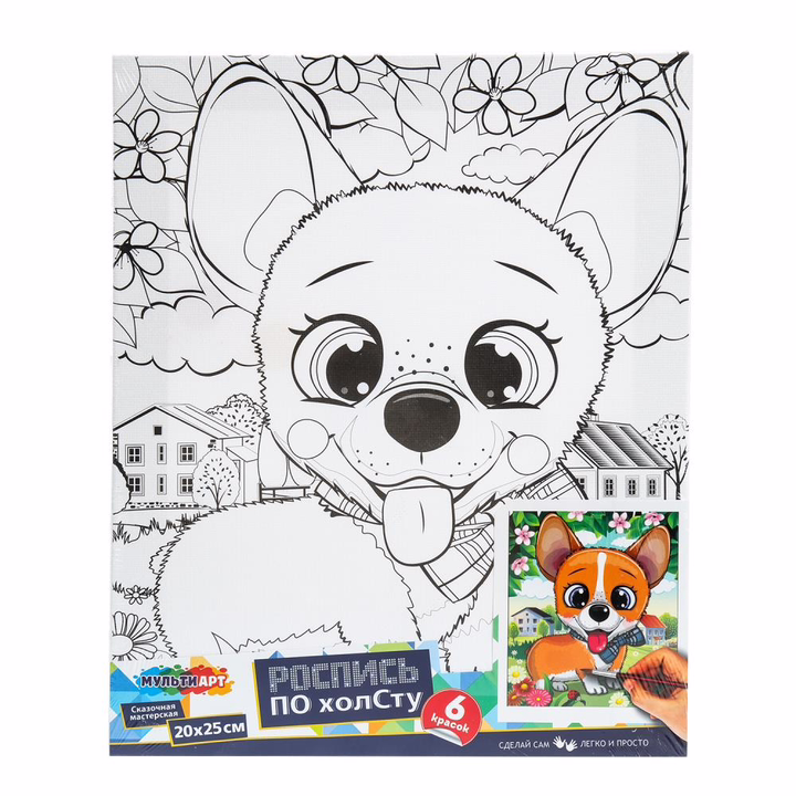 Холст для росписи по контуру "Корги" из серии "Сказочная мастерская" – отличный подарок для маленького художника.
