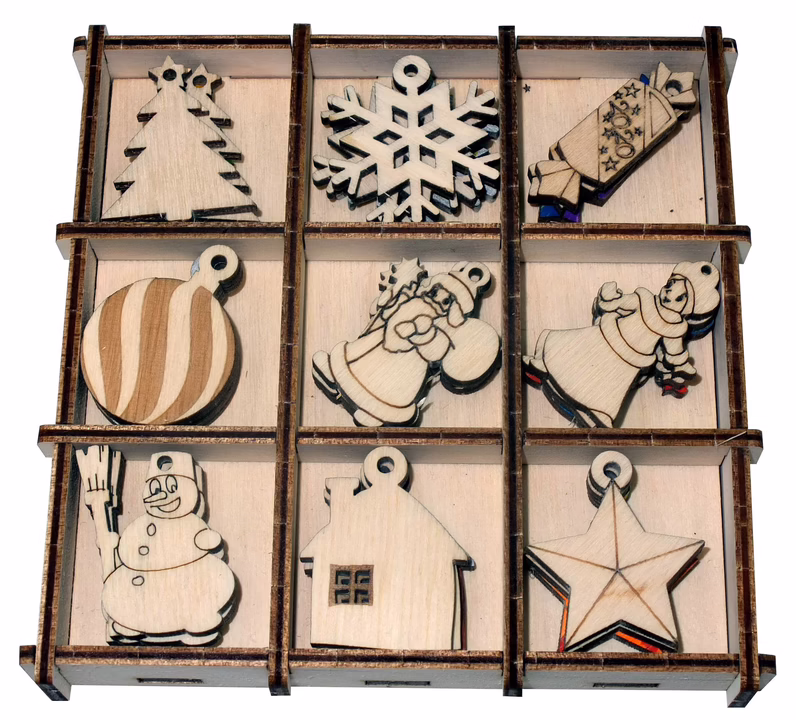 Детали выполнены с помощью лазерного реза из шлифованной березовой фанеры. Все края обработаны и не имеют заусенцев.