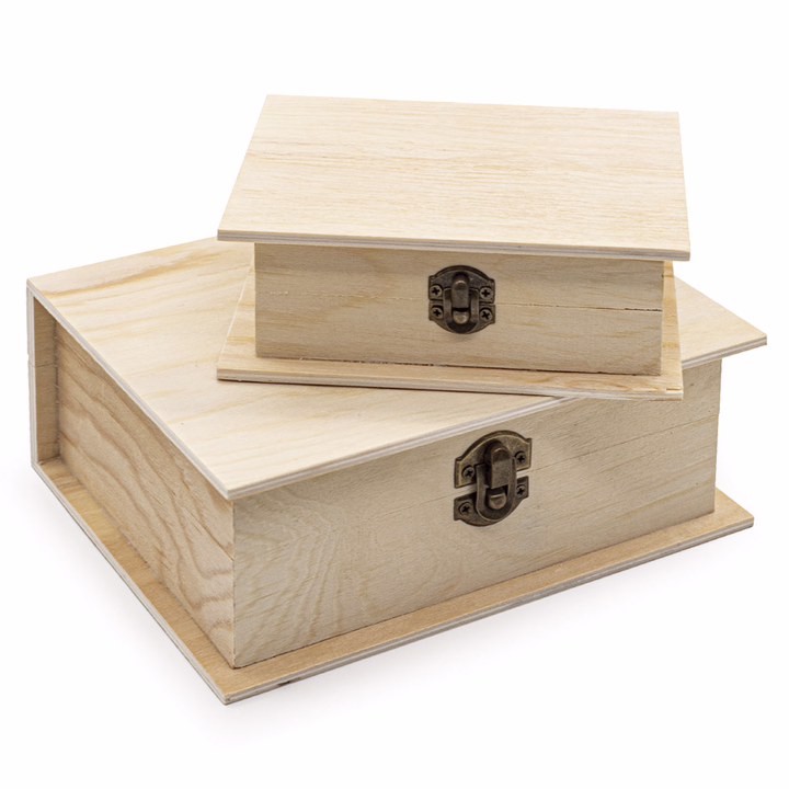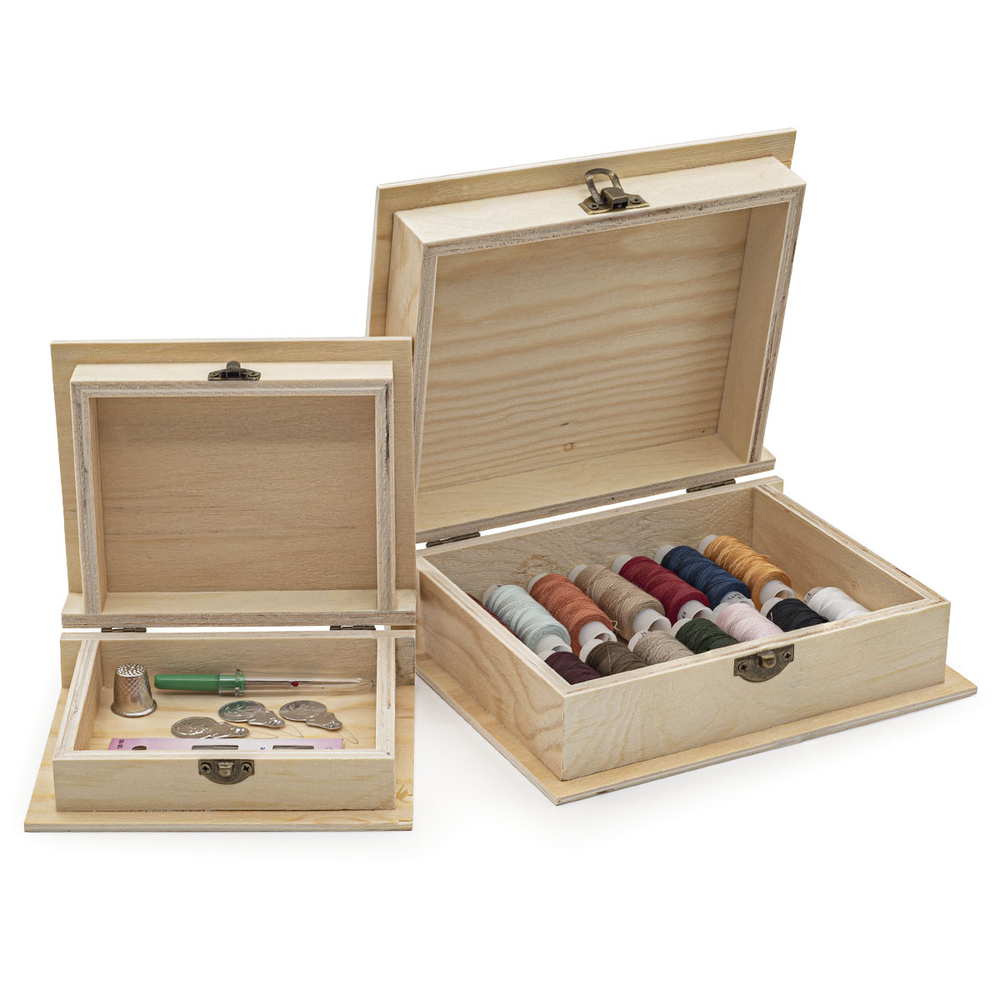 Шкатулки деревянные из фанеры сосны: 14,5x11,5x5 см и 19,5x15,5x7 см.