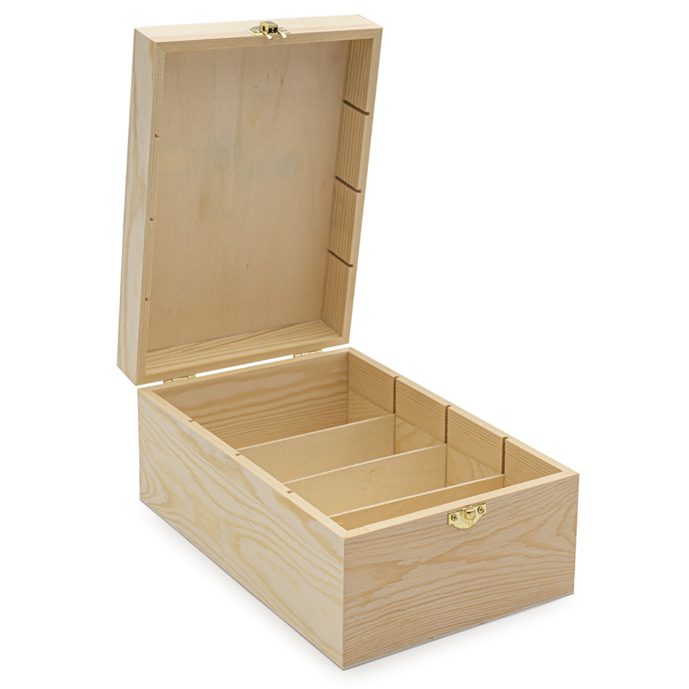Шкатулка деревянная представляет собой не только функциональный предмет для хранения разных мелочей, но и очаровательный элемент домашнего декора. Её внутреннее пространство разделено на четыре удобных отделения, которые позволяют аккуратно разместить всевозможные мелочи: от изысканных украшений до инструментов для творчества и рукоделия.
