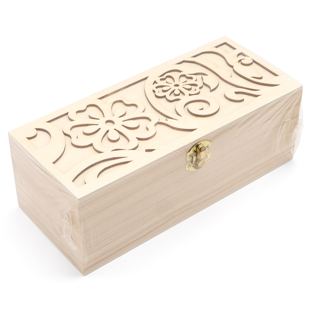 Деревянная шкатулка с ажурным цветочным узором – практичная вещь и уютная деталь интерьера. Храните в ней украшения и любые другие важные мелочи. Корпус шкатулки изготовлен из древесины павловнии, которая легко поддается декорированию. Отдельные элементы заготовки сделаны из фанеры. Образ завершает петля-замок золотистого цвета.