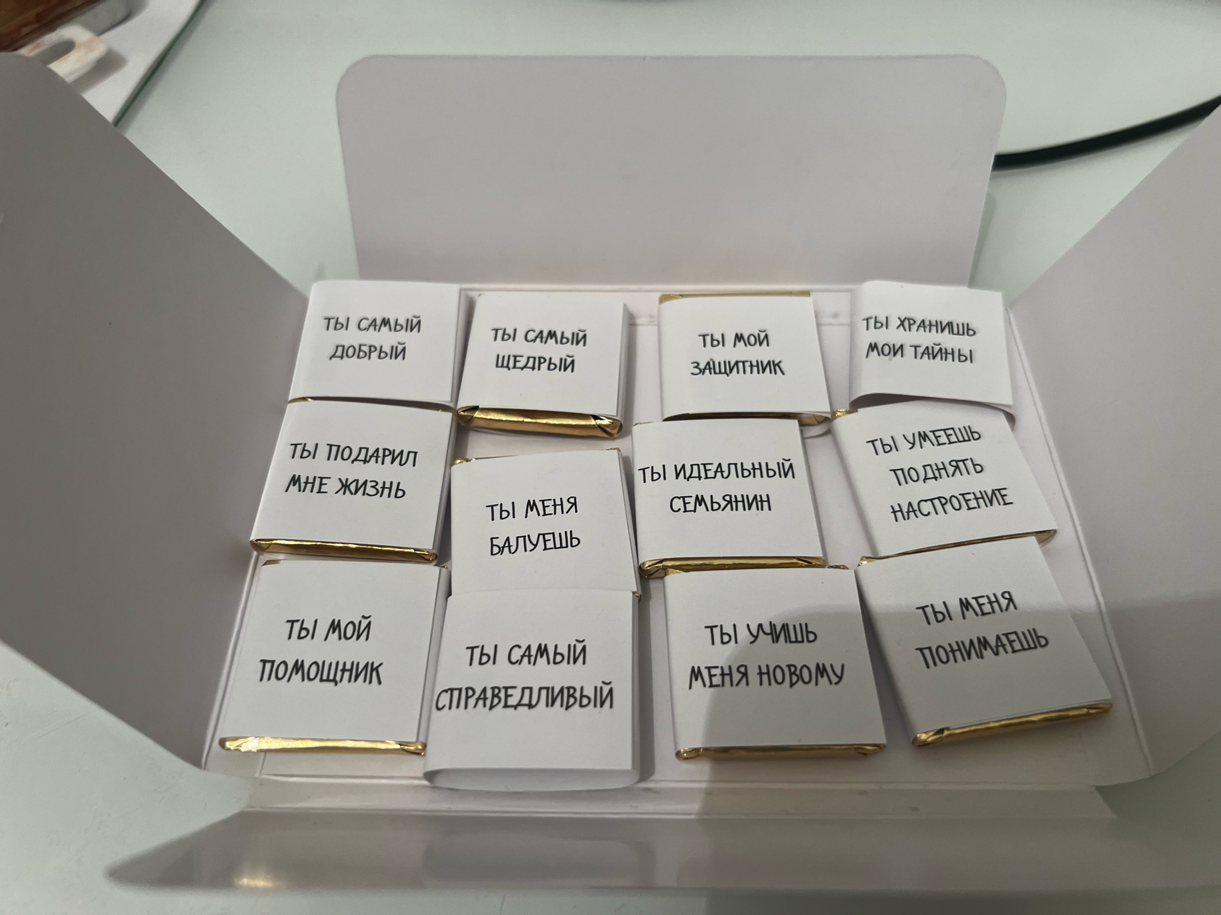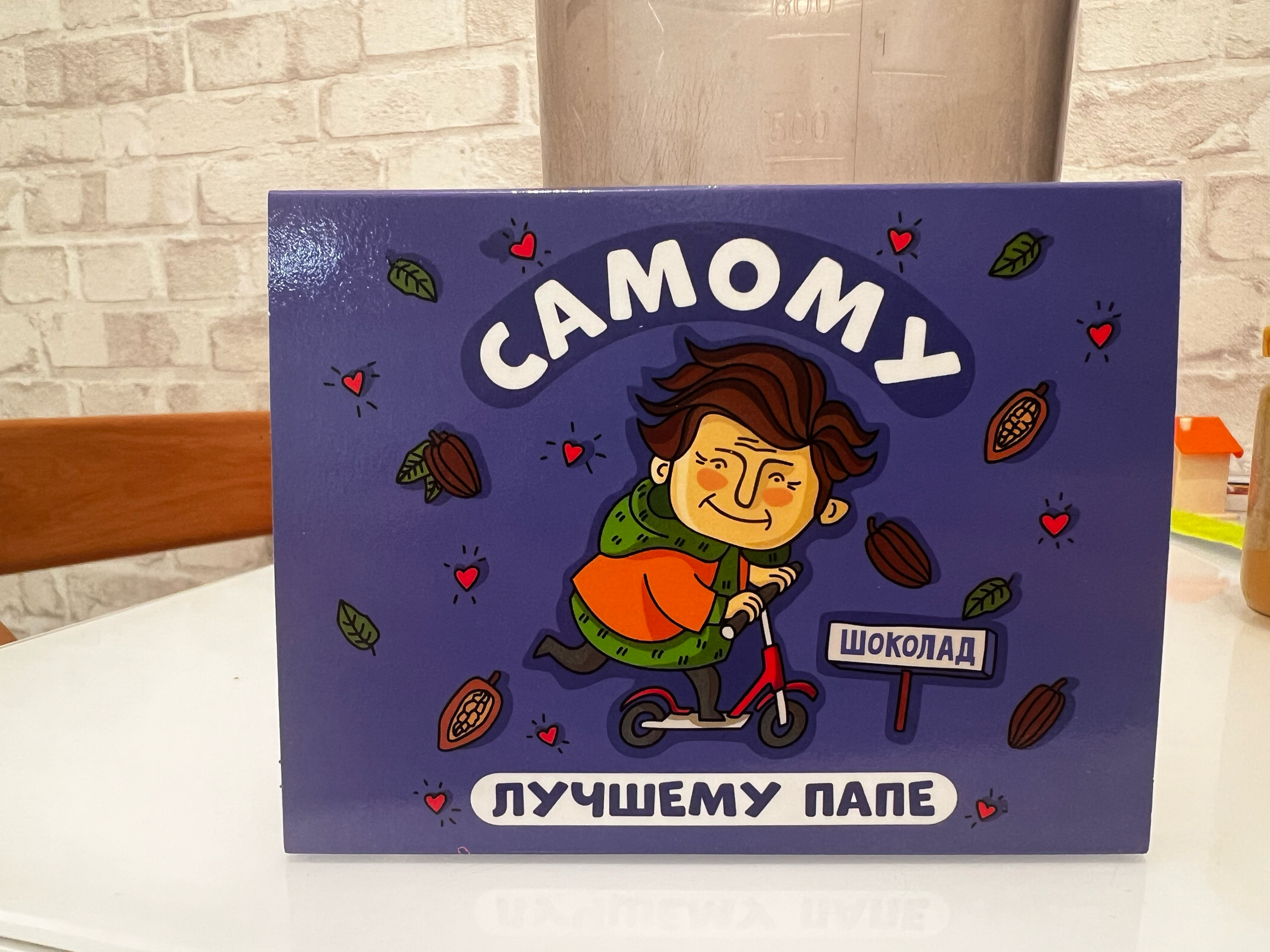 Очень милый презент для папы от деток. Ну и конечно вкусный молочный шоколад:)Маленький, но душу греет :)