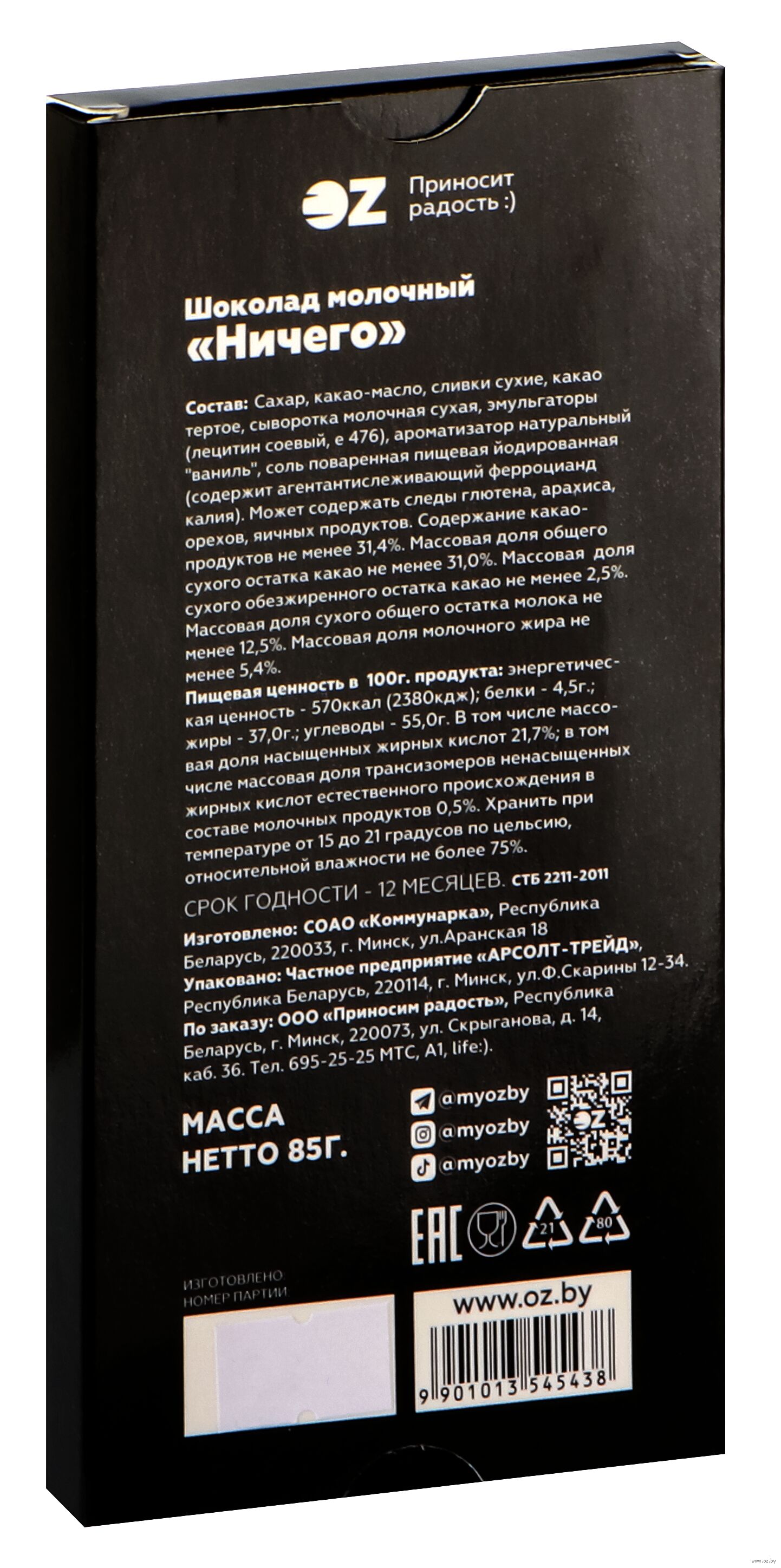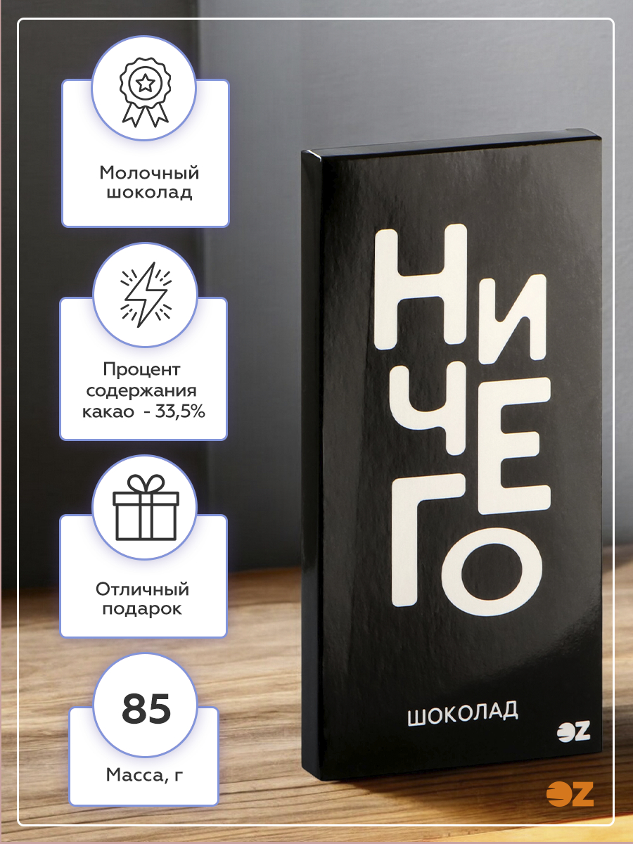 Шоколад молочный "Ничего" – это прекрасный способ поднять настроение, так же прекрасное и дополнение к любому подарку.