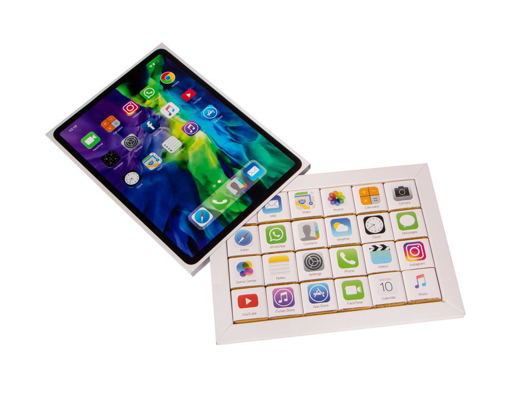 Каждая шоколадка внутри набора завёрнута в уникальную обёртку, символизирующую то или иное популярное приложение.