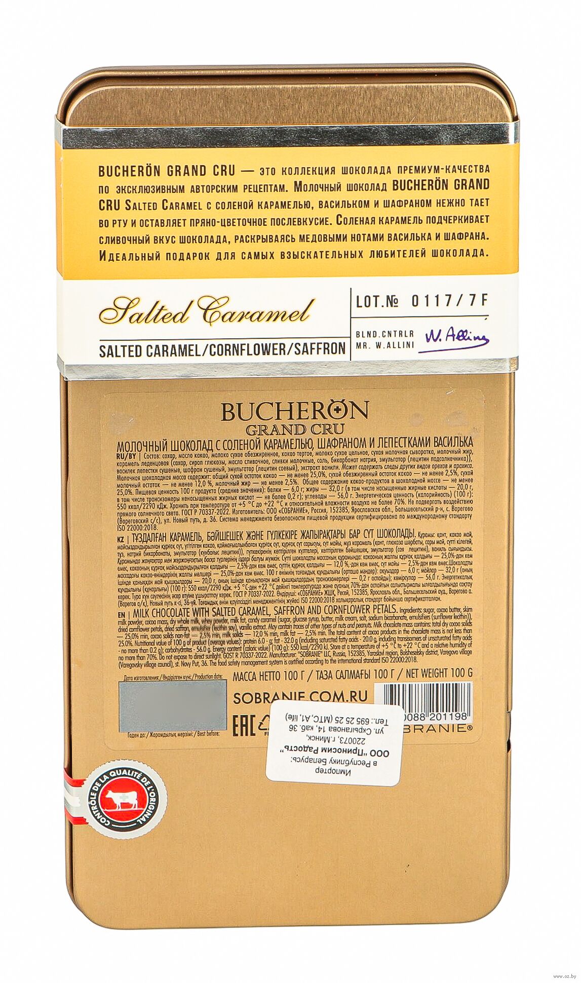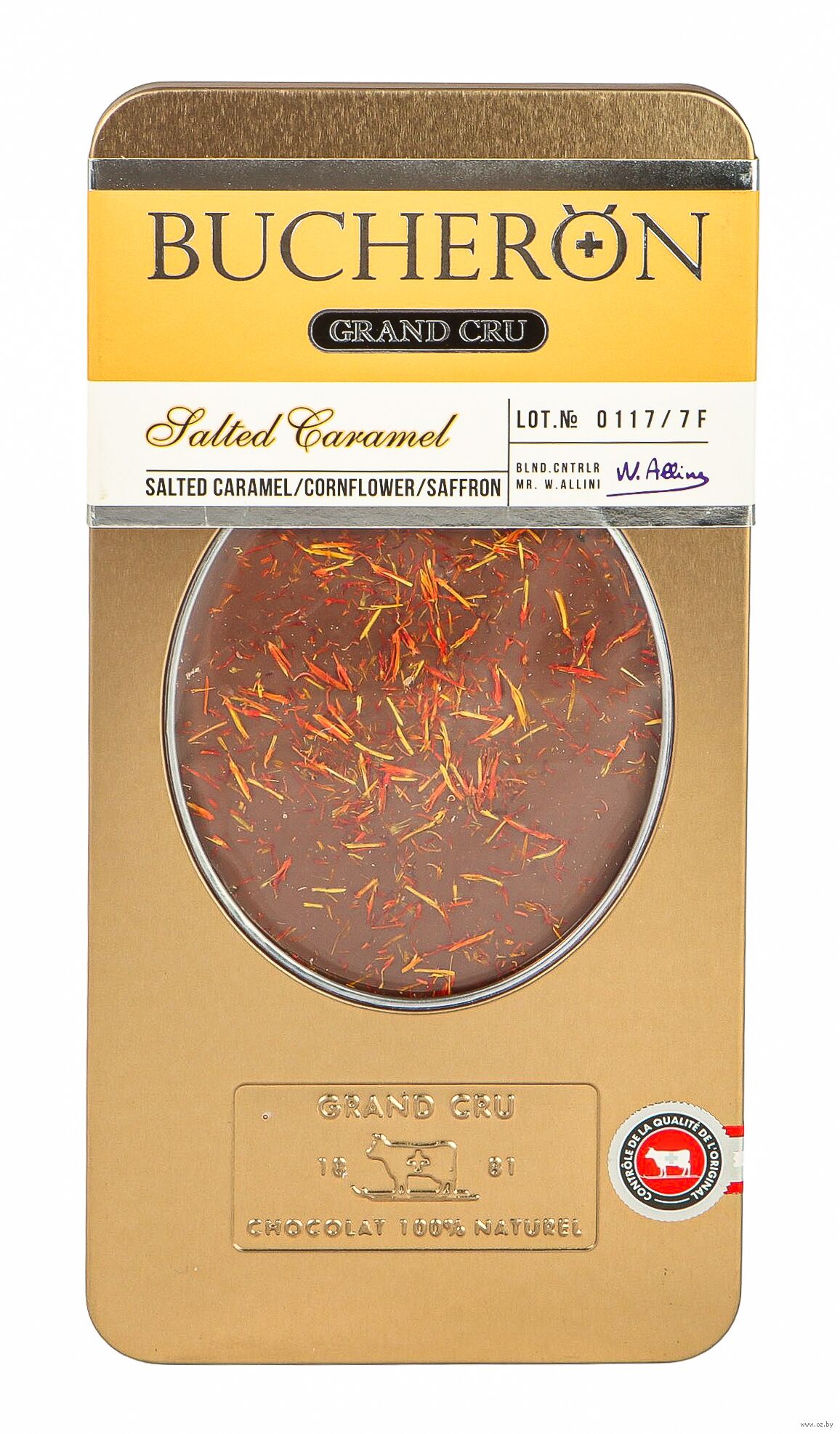 Соленая карамель подчеркивает сливочный вкус шоколада, раскрываясь медовыми нотами василька и шафрана.