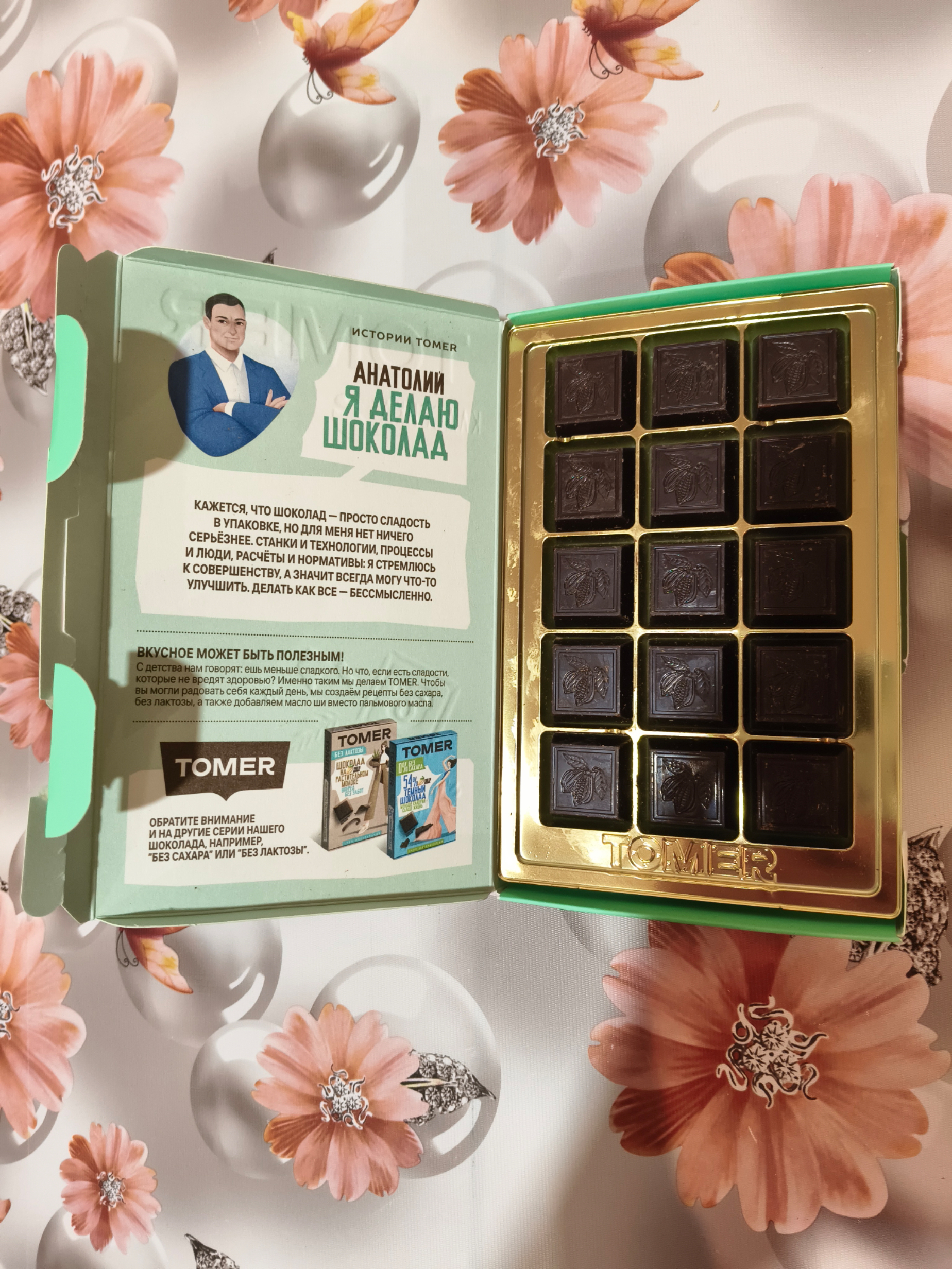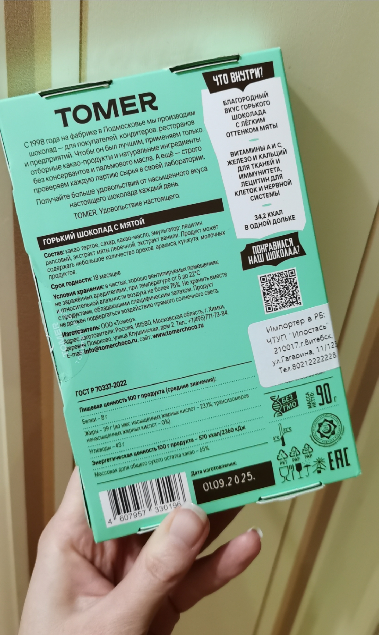 Шоколад с мятой. Мята пахнет через коробочку. По срокам годности нормально все. Пока не пробовали. Потом отзыв дополним.