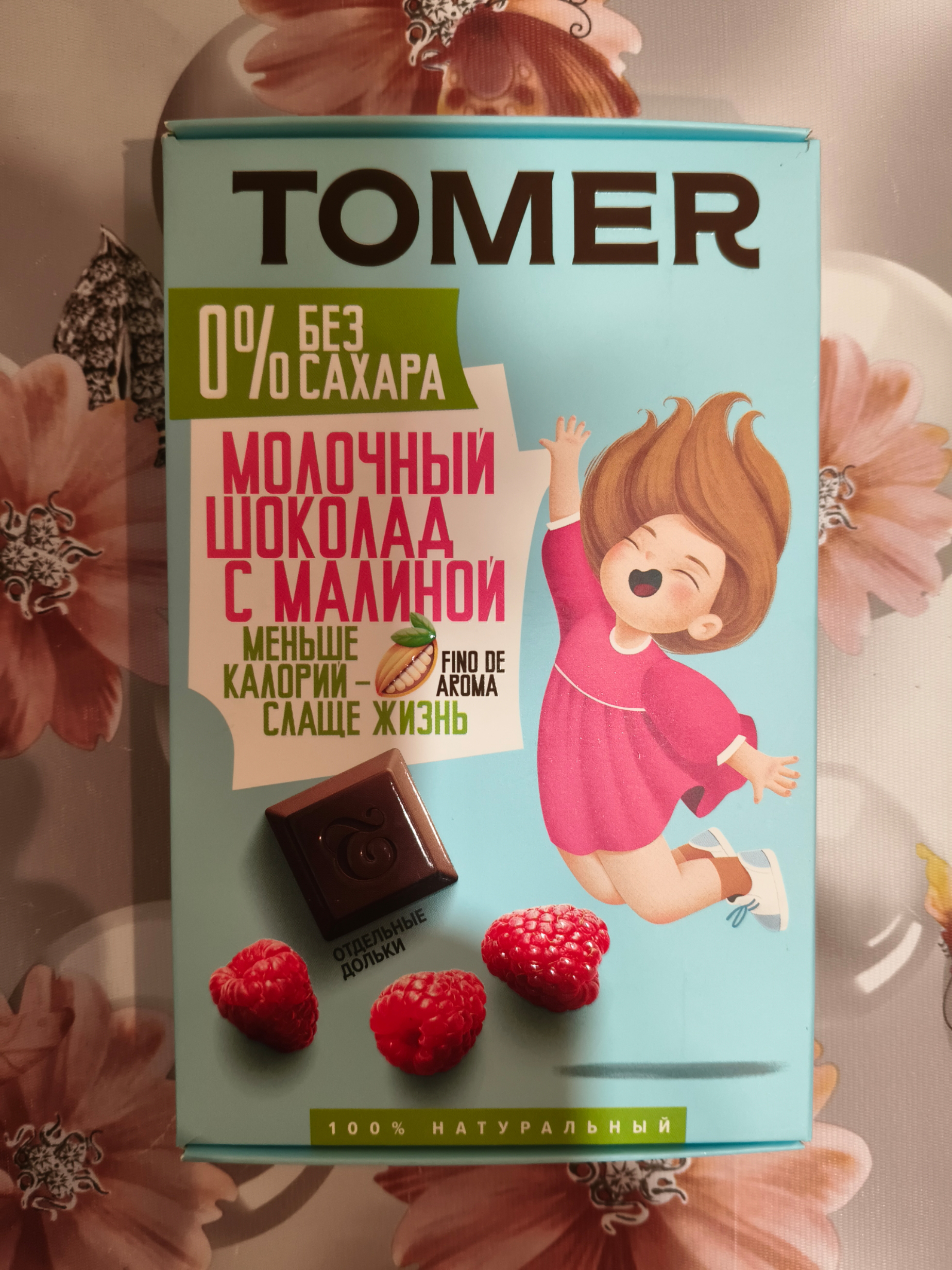 Подсластитель мальтитол, какао-масло, молоко сухое цельное, какао тертое, кусочки малины сушеные (методом сублимационной сушки), эмульгатор лецитин рапсовый, экстракт ванили, экстракт малины.