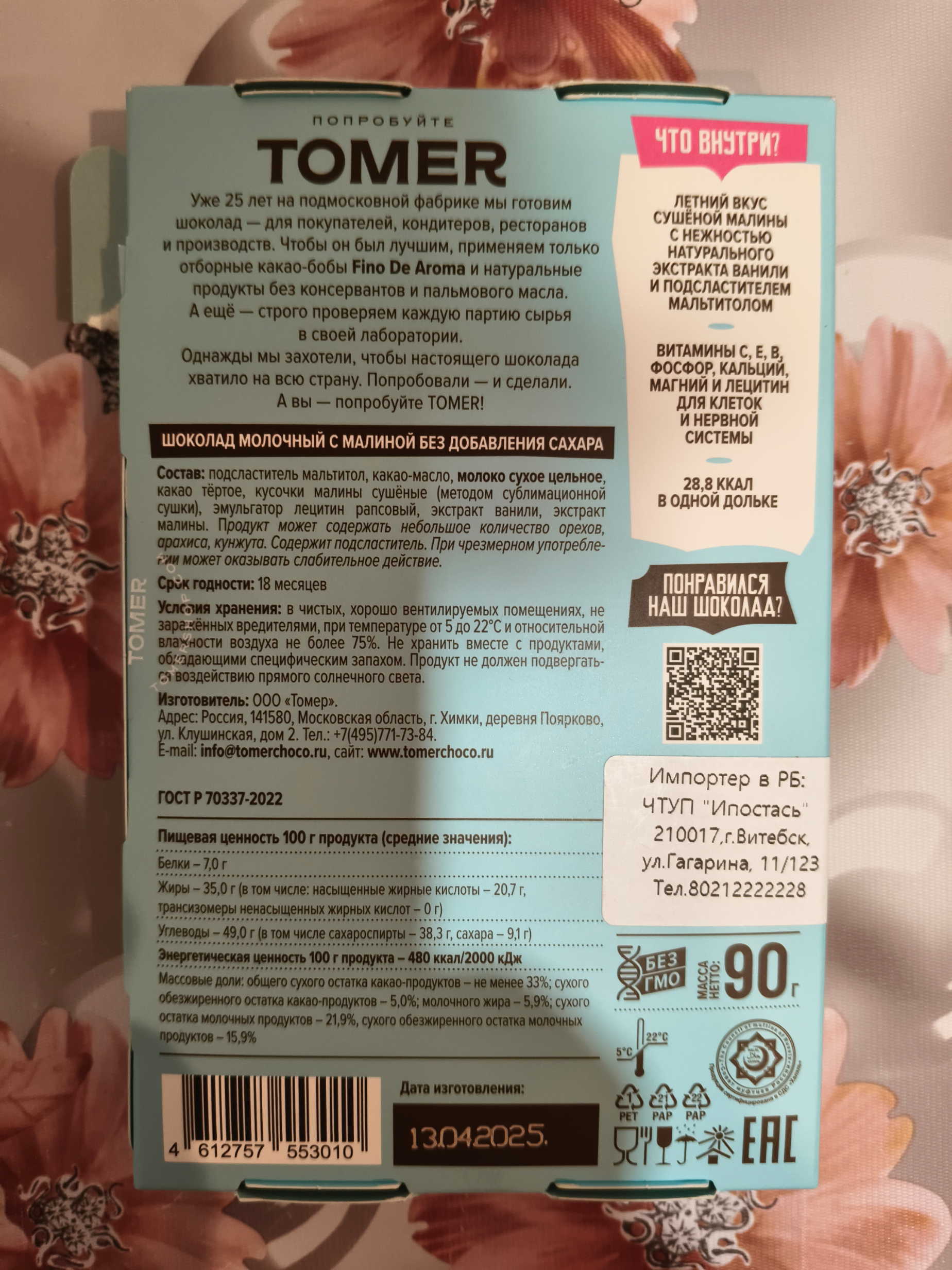 | Импортер | ЧТУП "Ипостась", 210017, г. Витебск, ул. Гагарина, 11, офис 123 |