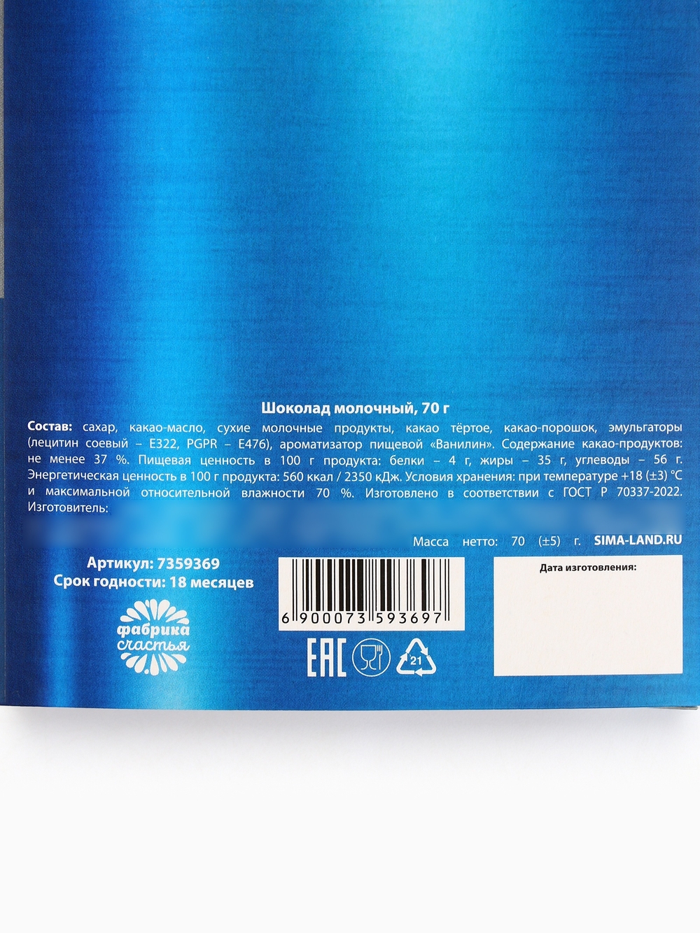 | Изготовитель | ООО "Фабрика счастья", 191023, г. Санкт-Петербург, ул. Караванная, 1,литера а, помещ. 54-н помещ. оф. 3 ком. № 20 |