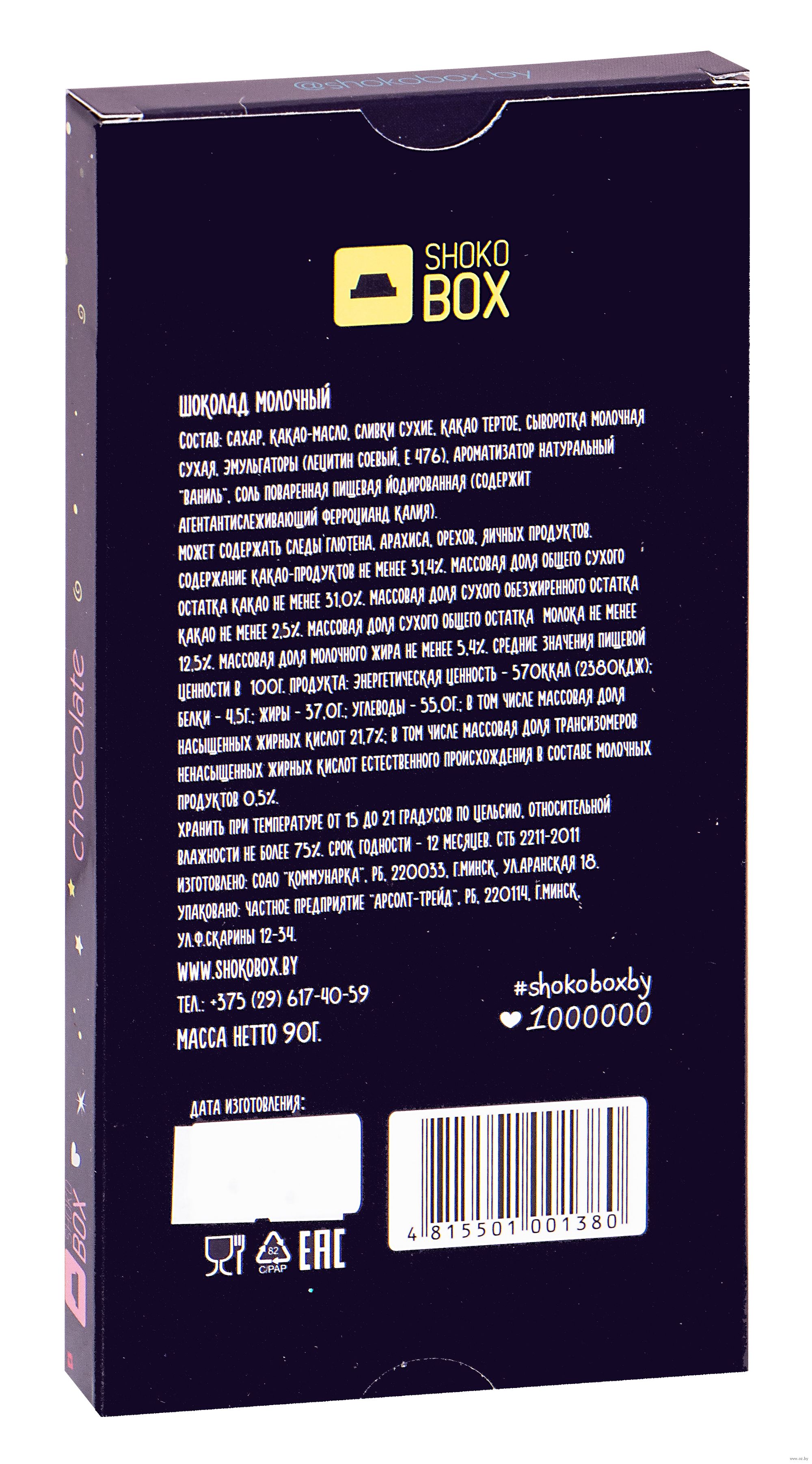 Сахар, молоко сухое, какао-масло, какао тертое, эмульгаторы (лецитин соевый, Е476), ароматизатор натуральный "Ваниль". Может содержать следы глютена, арахиса, орехов, яичных продуктов.