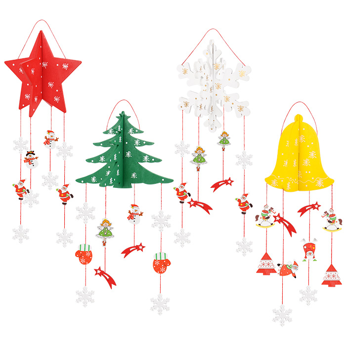Подвеска новогодняя 3D mix дизайн (елка 21,5х16 см, снежинка 15,5х17,5 см, колокольчик 15,5х16,5 см, звезда 17х17 см).
