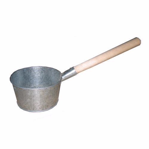 Ковш оцинкованный 1,5 л, диаметр 26 см, высота 10 см, с носиком, деревянная ручка 33 см.