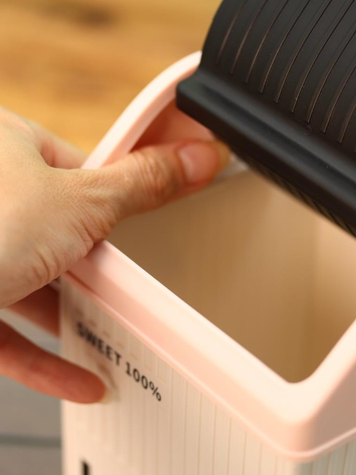 Удобное настольное ведро для мелкого мусора – стильное решение для рабочего стола, кухни или ванной комнаты. Оснащено откидной крышкой для легкого сброса отходов без необходимости её снимать.