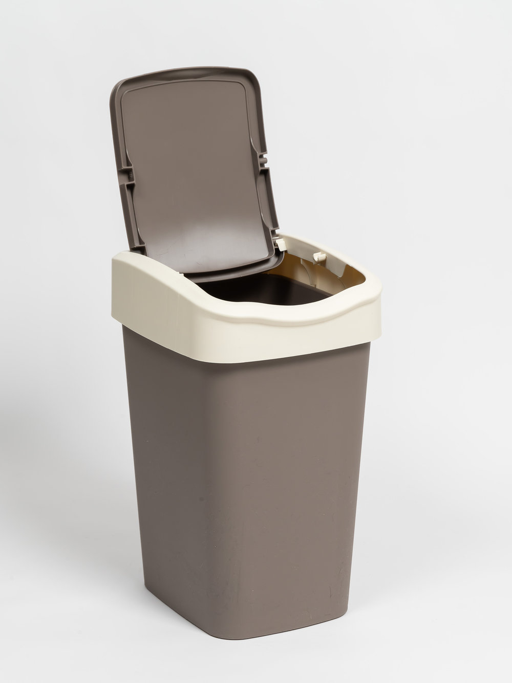 Стильная урна универсальной формы подойдёт под любой интерьер. Контейнер оснащен подвижной крышкой. Механизм ее действия простой, надежный и удобный: при использовании крышка сама открывается и закрывается – и Ваши руки остаются чистыми!