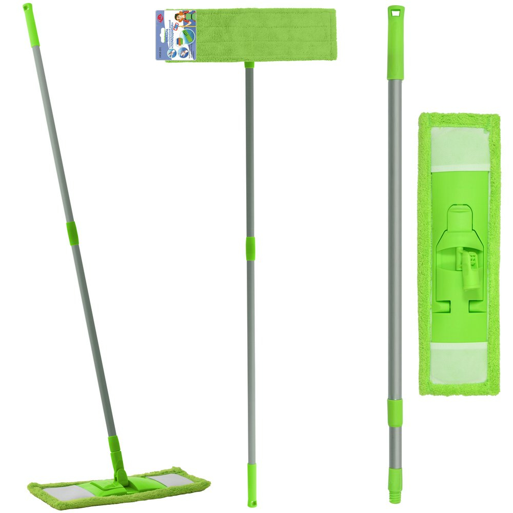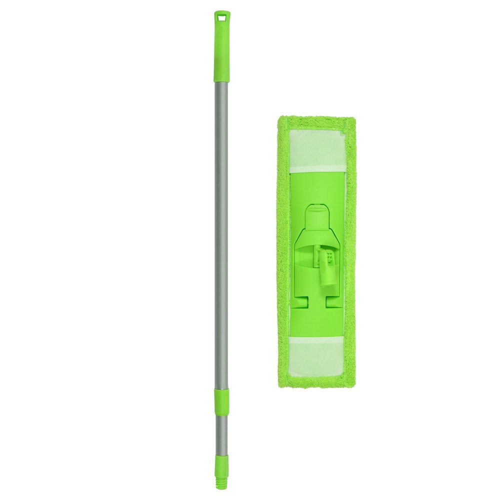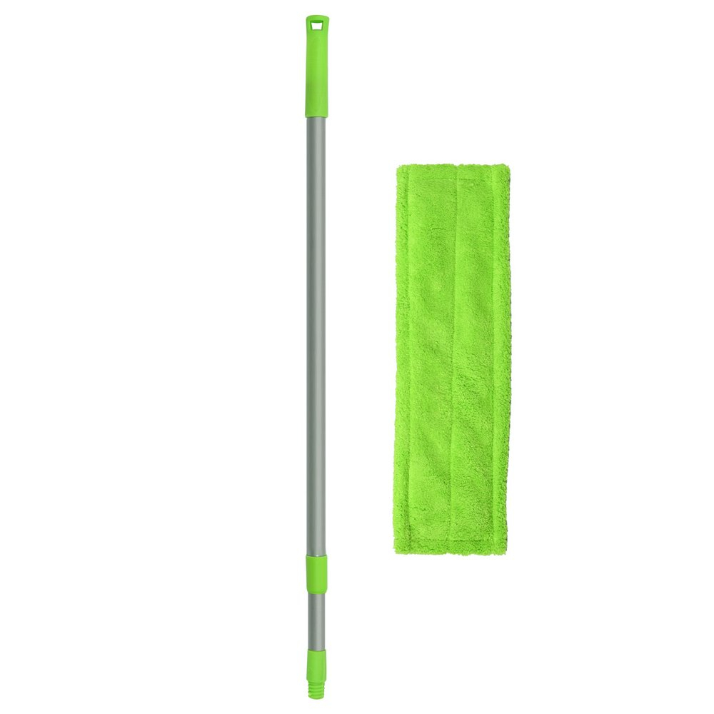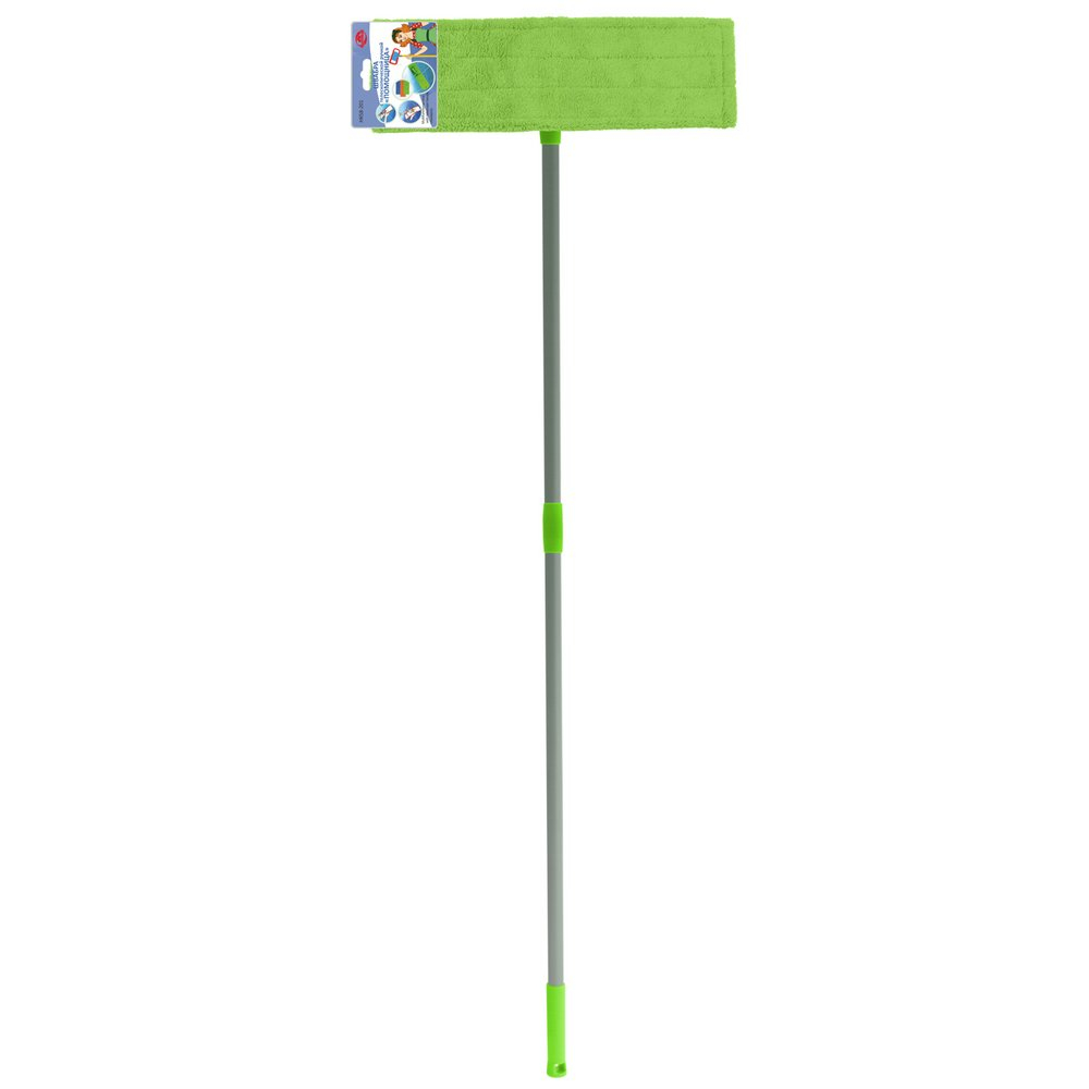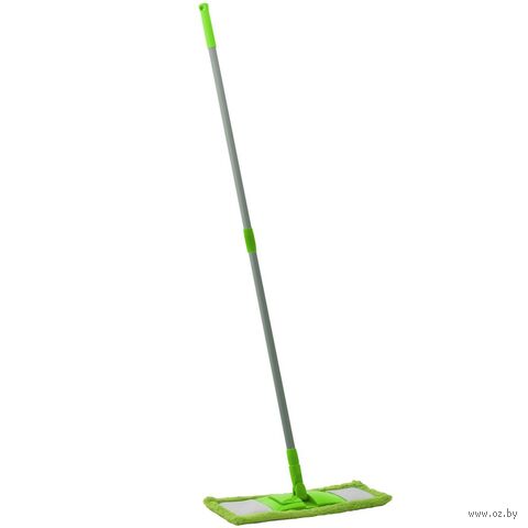 Швабра с телескопической ручкой позволяет очистить загрязнения даже в труднодоступных местах (в углах, под мебелью и т.д.). Насадка из микрофибры эффективно справляется с загрязнениями во время сухой и влажной уборки.